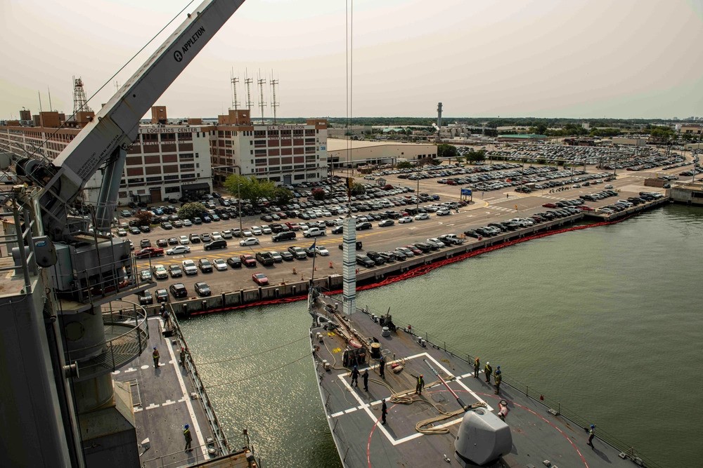 Still, it’s a very different thing reloading VLS cells on an aircraft carrier with a truck-mounted crane on its deck compared to on a surface combatant without the benefits of massive deck space and inherent stability.