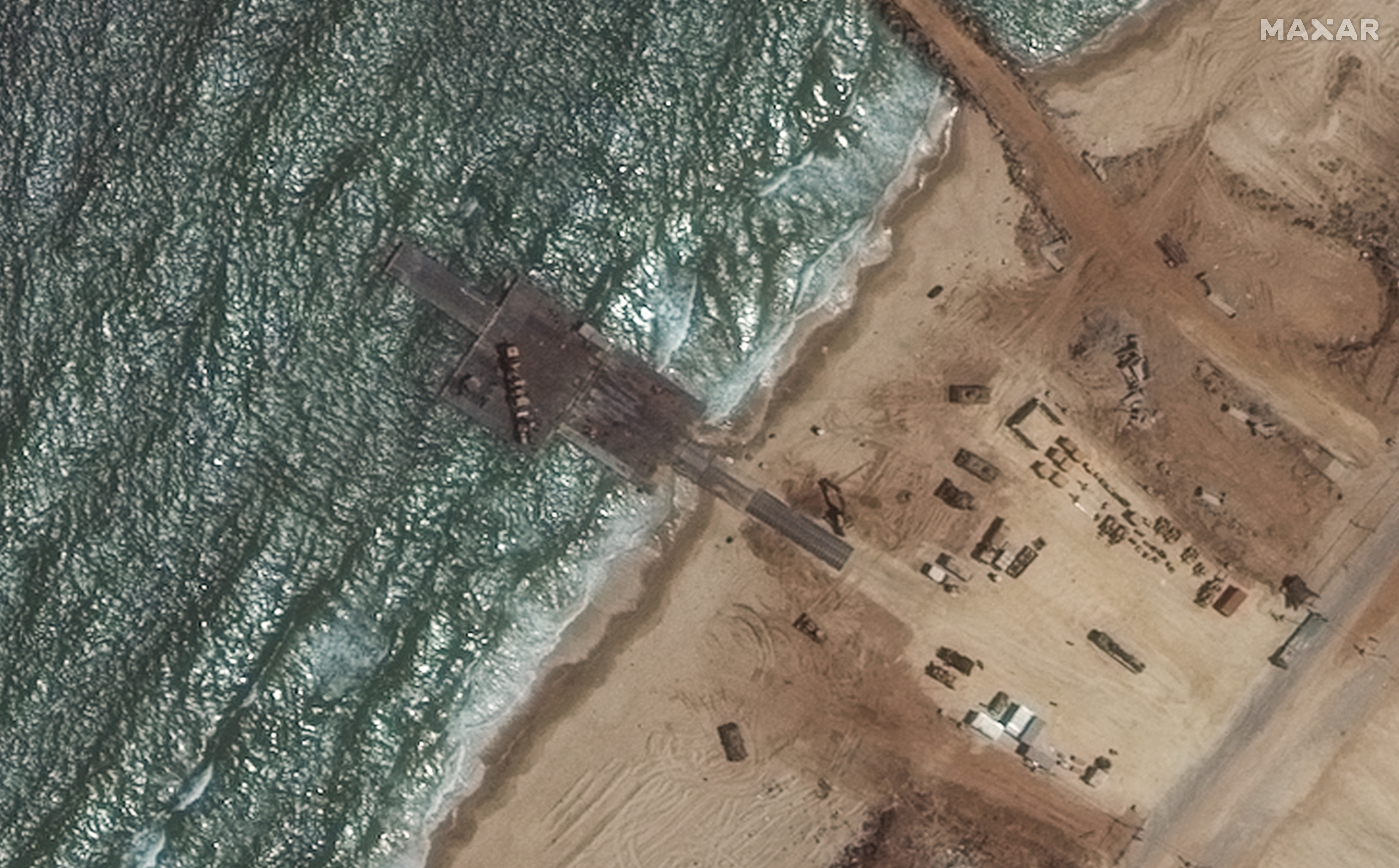 “I’m very pleased to announce earlier this morning in Gaza, U.S. forces successfully attached the temporary pier to the Gaza beach,” Vice Adm. Brad Cooper told reporters, including from The War Zone. “Israeli Defense Force engineers provided all the necessary support to ensure the safe and placement of the pier to the beach.”