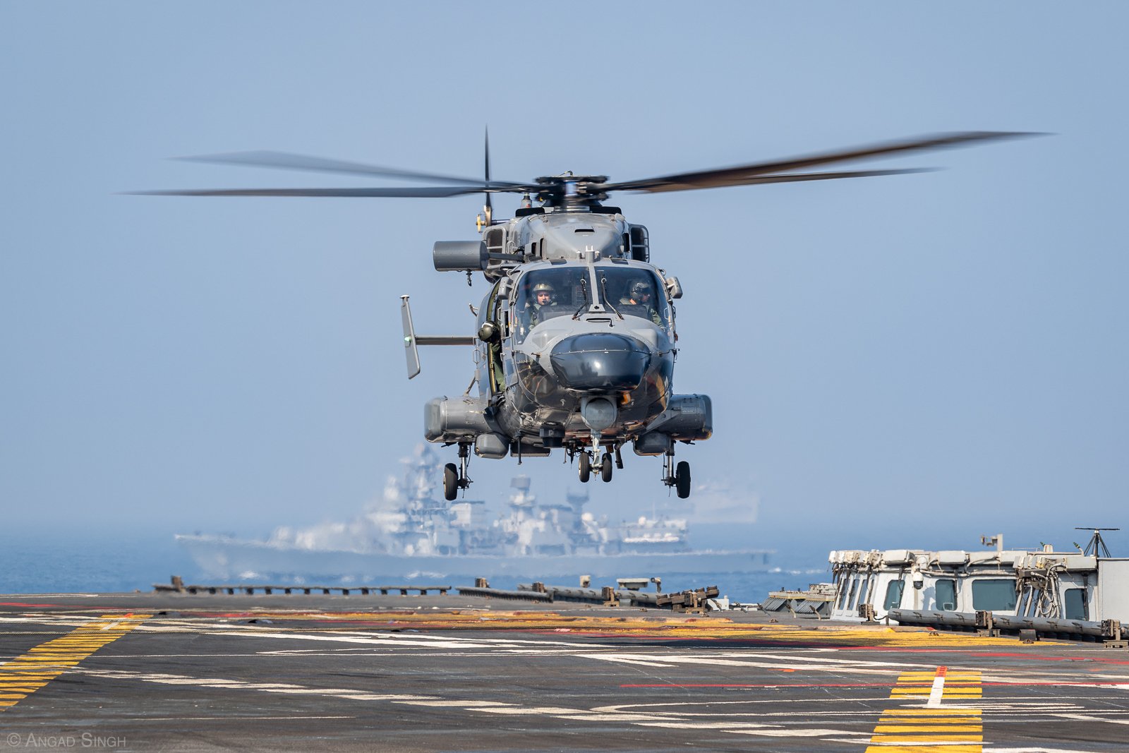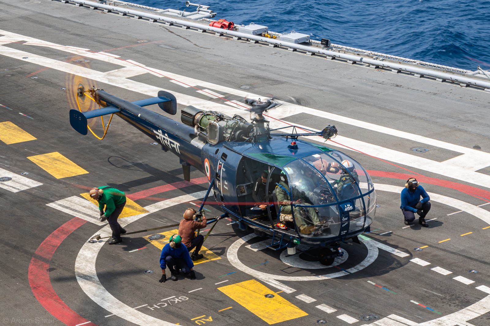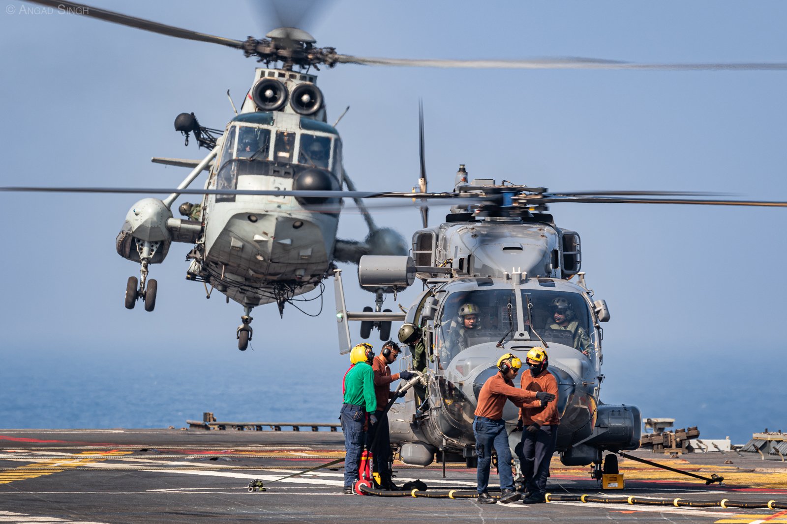 The carrier then joined the rest of the flotilla at anchorage off Visakhapatnam, and INS Vikrant hosted a range of helicopter operations, including ‘hot refueling’ of an ALH Mk 3 on the flight deck.