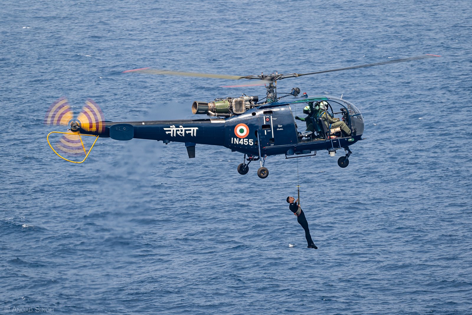 The closing day of the exercise also saw an operational demonstration aboard INS Vikramaditya, with a single MiG-29K carrying out a launch, display, overshoot, and landing cycle, and a Chetak plane-guard helicopter conducting a mock search and rescue (SAR) drill off the port bow.