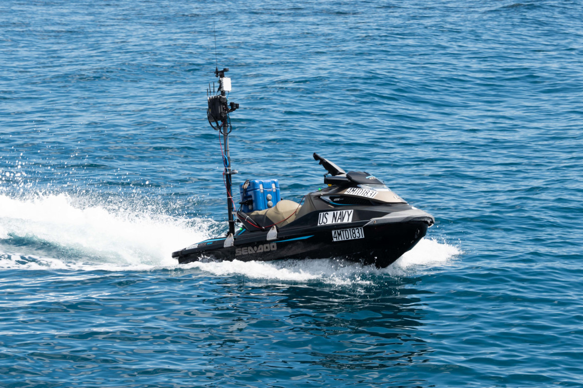 Each one of the dorne boats has to have “the ability to execute adaptive, cooperative behaviors and deconfliction with proximate sUSVs, including in crowded shipping lanes or in a GNSS-denied [global navigation satellite system, such as GPS] environment, and especially as related to shadowing or intercepting a noncooperative, maneuvering vessel of interest,” DIU says. The “interceptors [also need to be able] to cooperatively and efficiently search for and localize a vessel of interest, especially using techniques and sensor modalities that minimize probability of detection.”