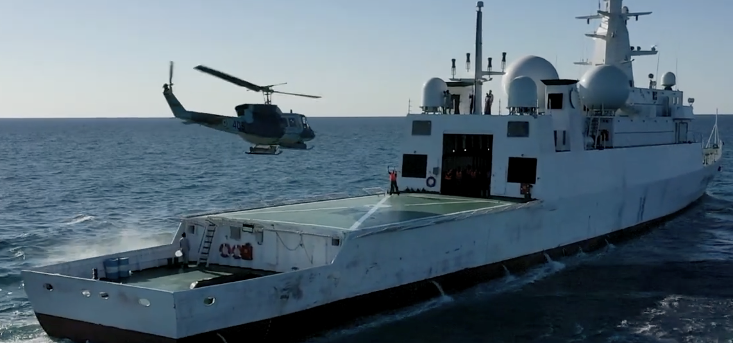 An embarked helicopter is an unusual feature of a SIGINT ship, suggesting that the vessel is intended to undertake other missions, as well, or perhaps the rotorcraft is intended simply to provide a means of logistical support when at sea for extended periods. On the other hand, a helicopter could also be used to provide a degree of force protection, especially important in the absence of other weapons aboard the ship — although some lighter weapons may still be fitted at a later date. Another option would be to outfit the helicopter with a sensor payload, increasing the overall area in which intelligence can be collected and providing a rapid means of gathering it from points of interest.