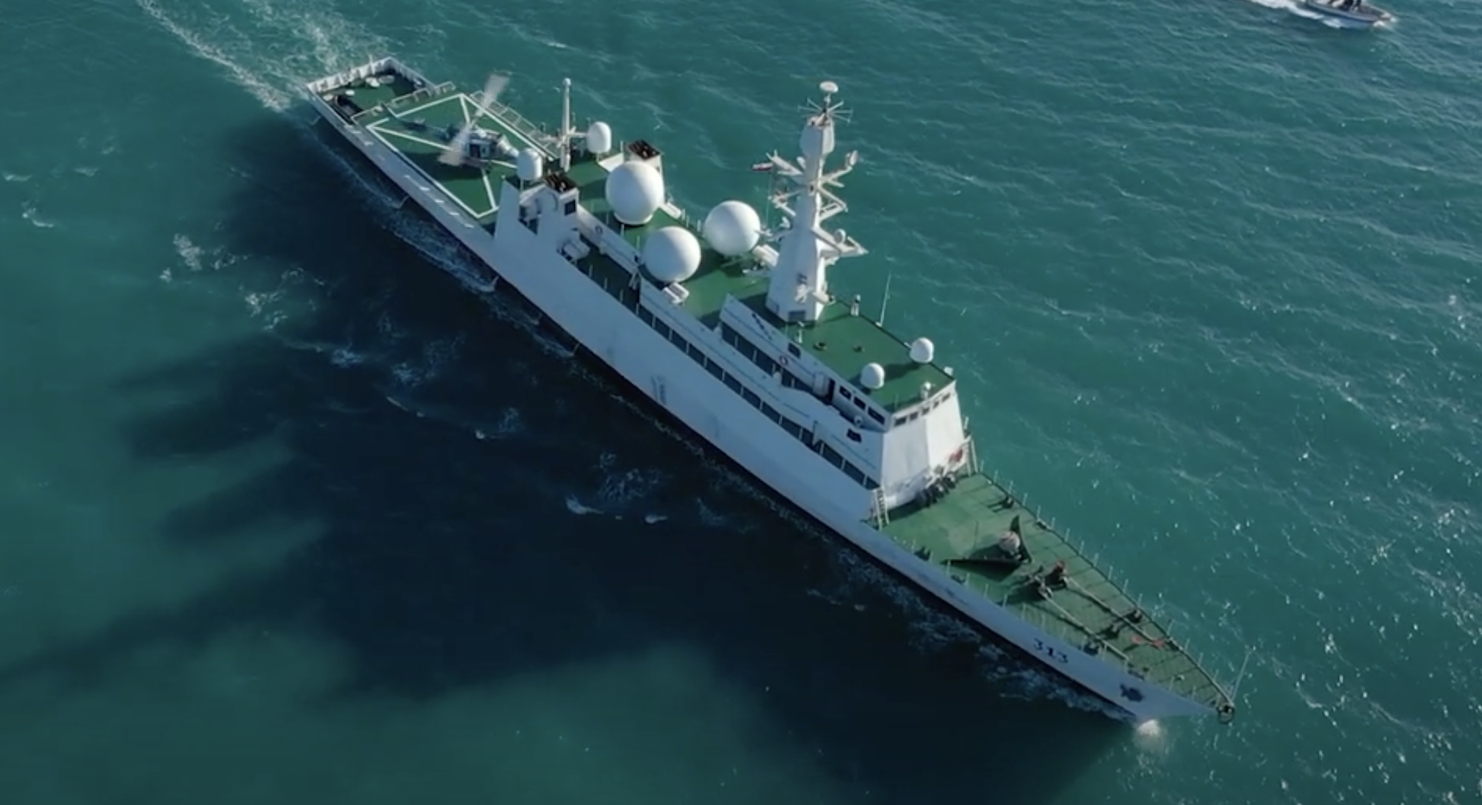 Meanwhile, an apparent radio direction-finding antenna mounted on top of the ship’s mast has been noted as being very similar to a system of this kind marketed by China.