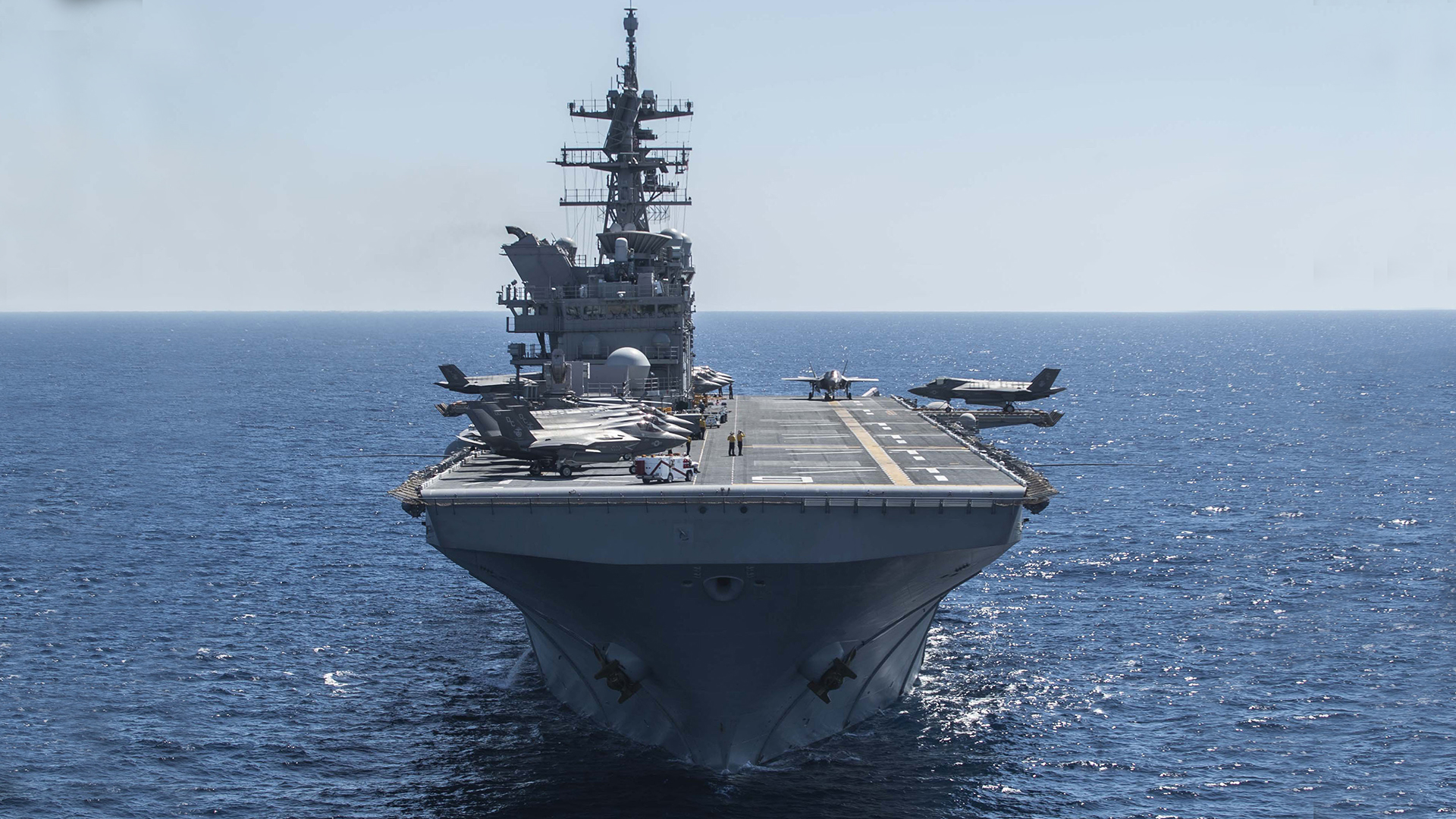 The America class ships are some of the most versatile warships ever conceived, designed as strike and assault delivery platforms so Marines can get ashore. They typically have a combination of UH-1Y utility and AH-1Z attack helicopters, MV-22B Osprey tiltrotor transports, CH-53E Super Stallions, and CH-53K King Stallions. F-35B stealth fighters or, increasingly less commonly, AV-8B Harrier jump jets provide fixed-wing air support for those forces, as well as airborne reconaisssance, strike and air defense.