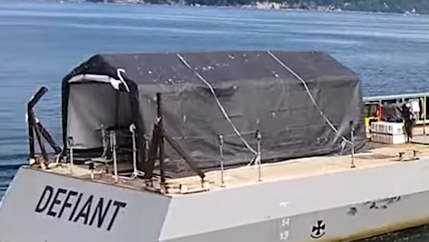 As noted, Defiant was built to operate without human personnel onboard, even just to monitor systems or provide an extra margin of safety, and so it does not have any accommodations for them. However, Defiant is seen in the recent DARPA imagery with a tent set up at the stern, which would provide some basic shelter for individuals working onboard as part of the initial testing.