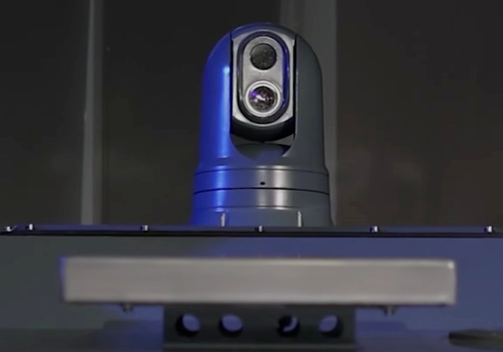 It has multiple video feeds for operators to exploit, with day/night gyro-stabilized turret — likely for general surveillance and target acquisition cueing — and two staring video systems. Its product card also listed ‘acoustic environment monitoring systems.’ It is controlled remotely with an encrypted satellite link, according to the card. We spotted no less than three planar satellite antennas atop the boat’s hull in previous imagery.