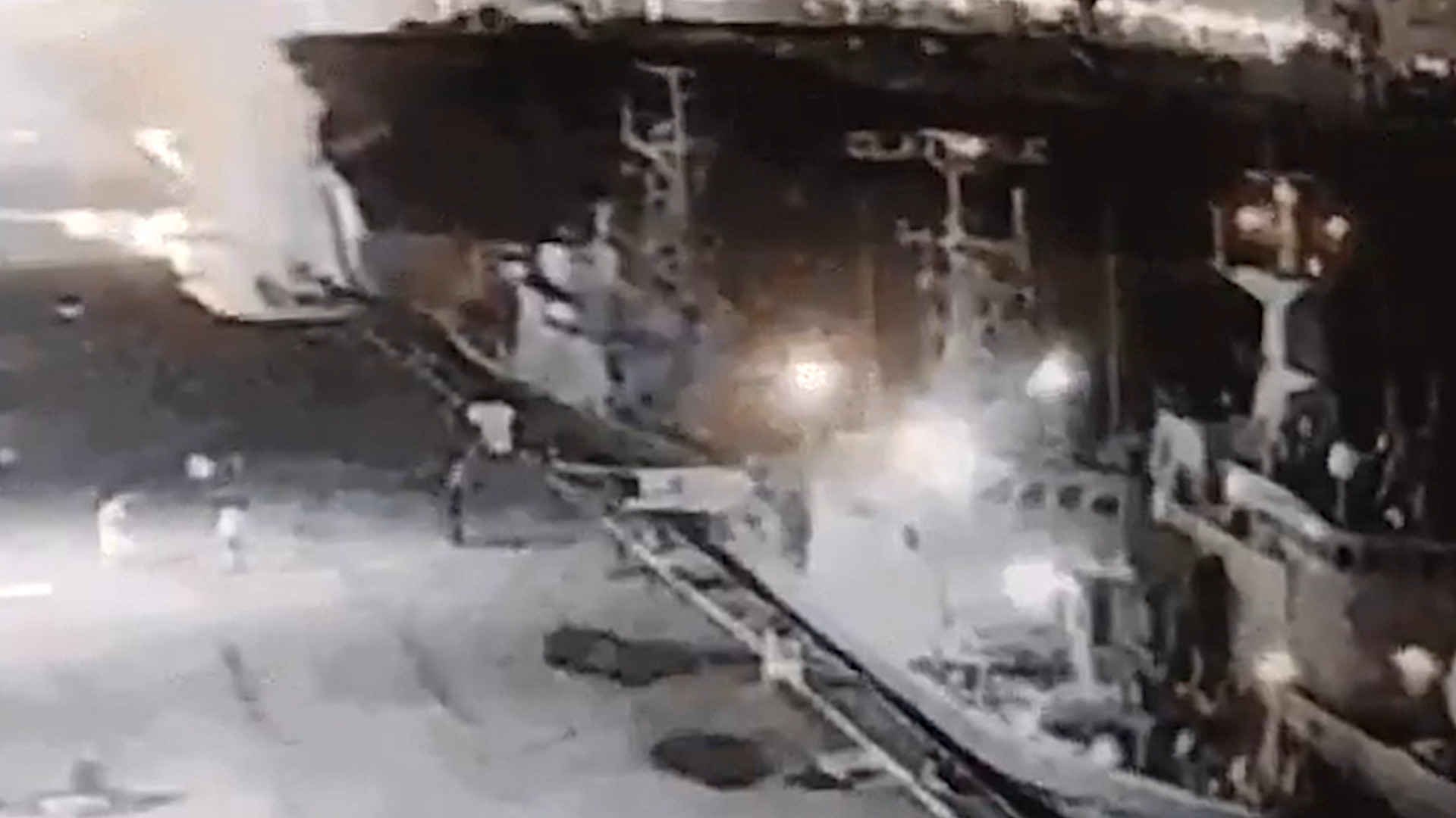Videos have emerged showing an out of control commercial oil tanker hitting a row of three Brazilian Navy patrol boats, as well as the pier, in the Port of Santos along the country’s southeastern coast last night.