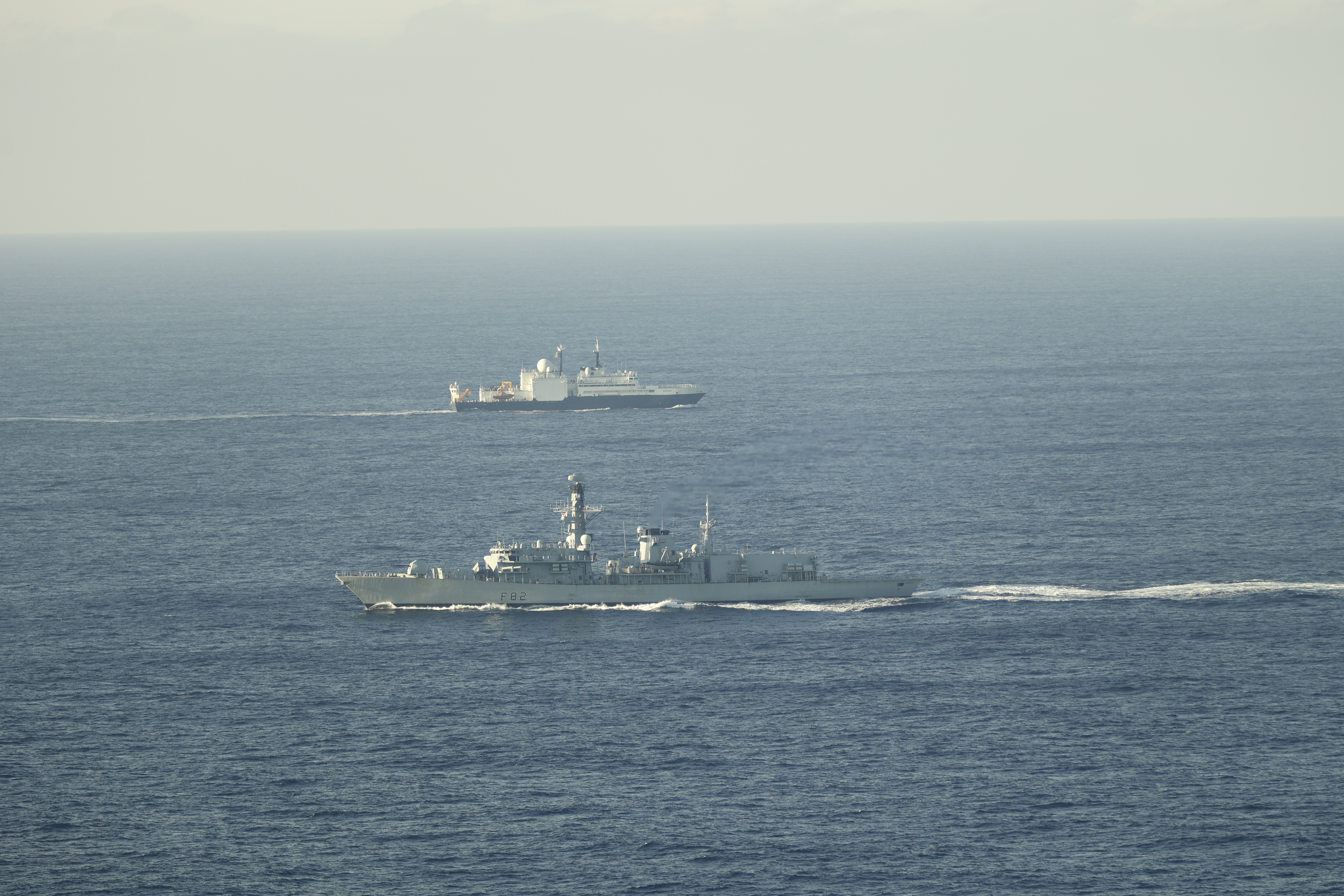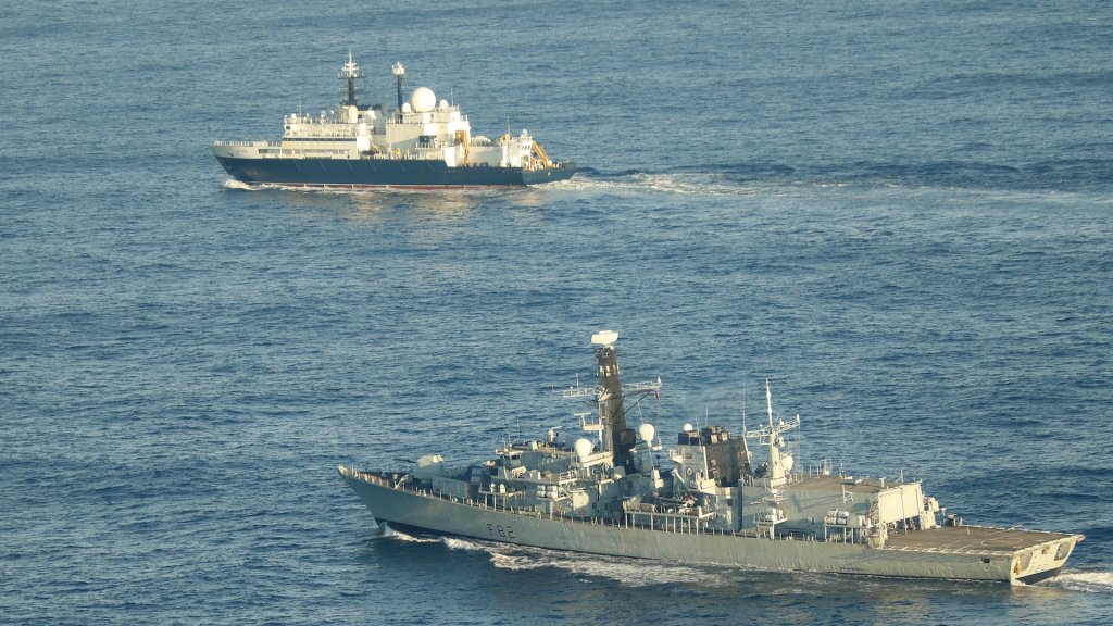 According to the Royal Navy, Somerset “covertly launched her Merlin helicopter, which used its powerful sensors to locate the Russian ship as it made its way north towards the English Channel.” The Type 23 frigate then closed in on the Yantar’s location and intercepted it at the entrance to the Channel, off the French coast.