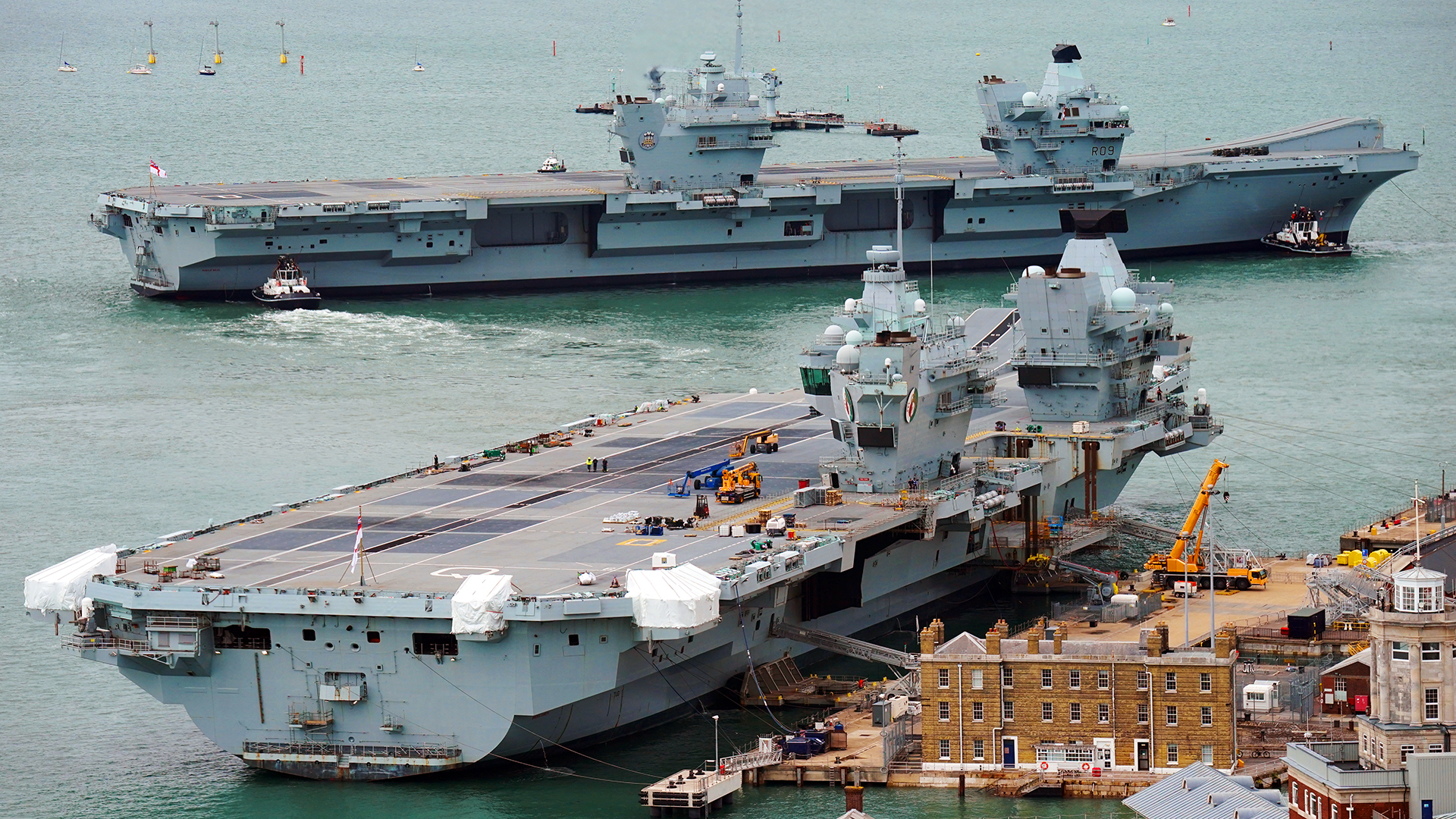 The Queen Elizabeth class has a notably wide deck, but there’s no angled landing area, which would enable simultaneous launch and recovery operations. Also unclear is to what degree drones could operate from the carriers’ existing takeoff ramps, which are required to make the maximum use of the STOVL F-35B.
