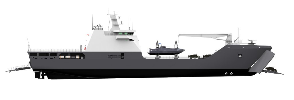 “The LST-100’s cargo capacity, helicopter capacity, berthing, and crane make it an excellent choice for the Marine Corps requirement of no less than 35 Medium Landing Ships to support naval expeditionary forces,” Marine Gen. Smith also says in today’s video. “The Medium Landing Ships will enable our Marines to be more agile and flexible in austere environments where there are no ports providing the joint force the needed operational mobility within the adversary’s Weapons Engagement Zone.”