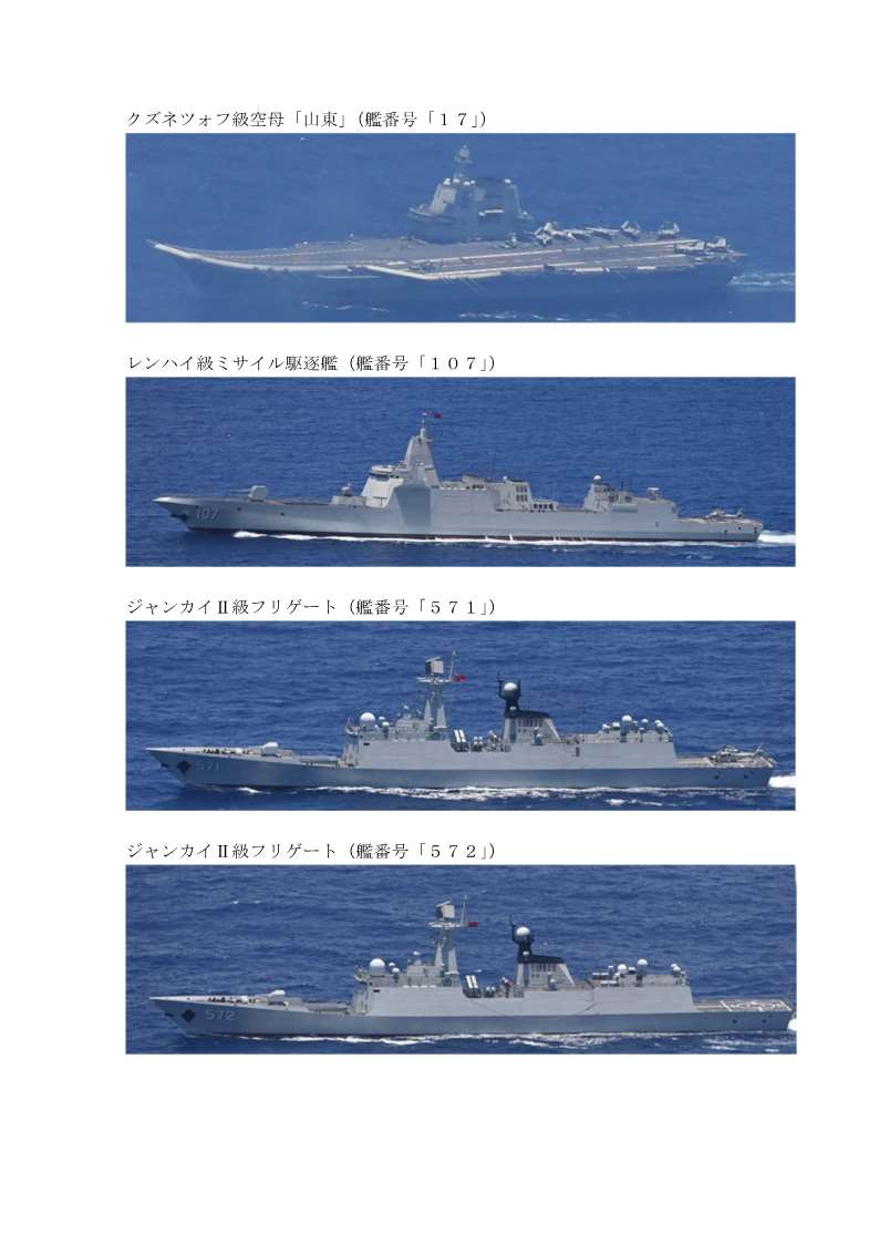 Included in the task group with Shandong were the Type 055 ‘super-destroyer’ Zunyi, the two Type 054A frigates Yuncheng and Hengshui, as well as a Type 905 replenishment oiler, according to photos and pennant numbers published by the Japanese Ministry of Defense.