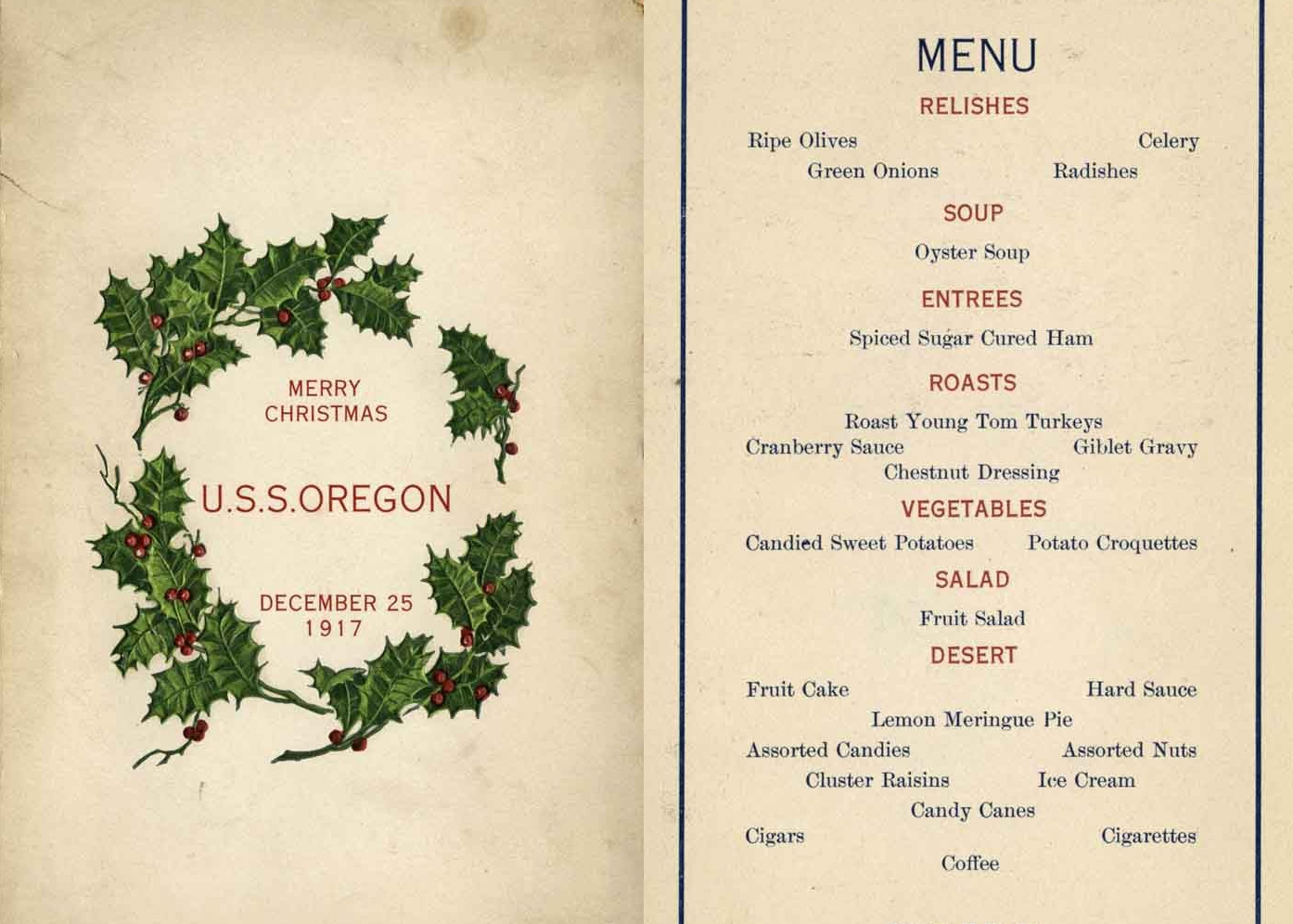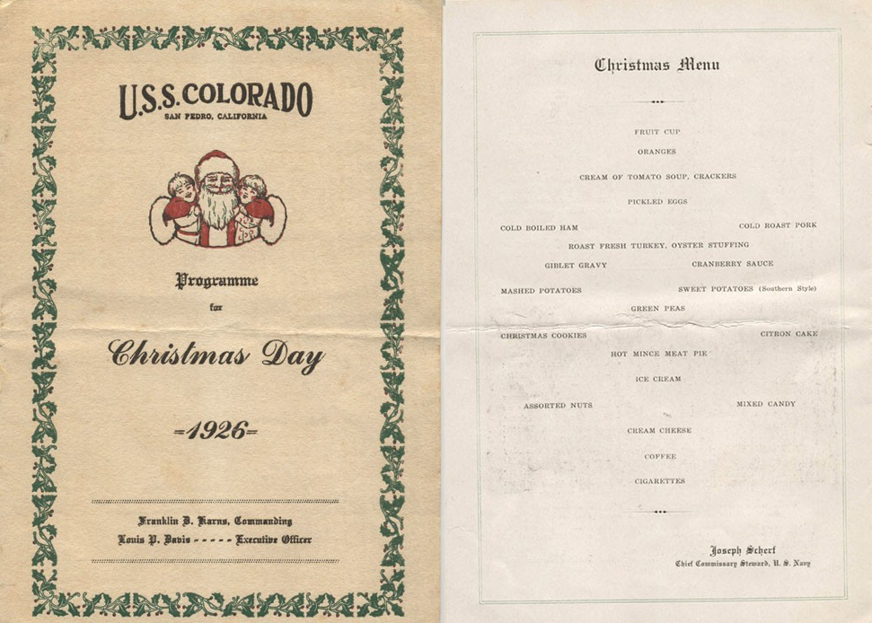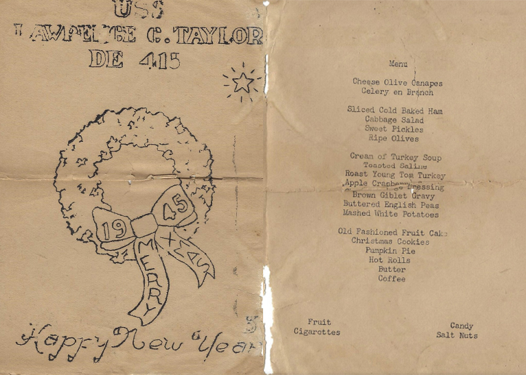 The not so good: Celery en Branch sounds like the mess got a tad lazy. Still, the ship and its crew had fought hard throughout the Pacific during the war, and had earned this feast by Xmas ‘45.