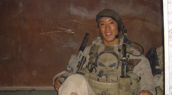 Assigned as a Special Warfare Operator to SEAL Team Three, Charlie Platoon, in San Diego, California, Kim obtained a boat load of qualifications including Military Freefall Parachutist, Combatant Diver (closed circuit rebreather), Naval Special Warfare Special Reconnaissance Scout and Sniper, and Advanced Special Operations Techniques.