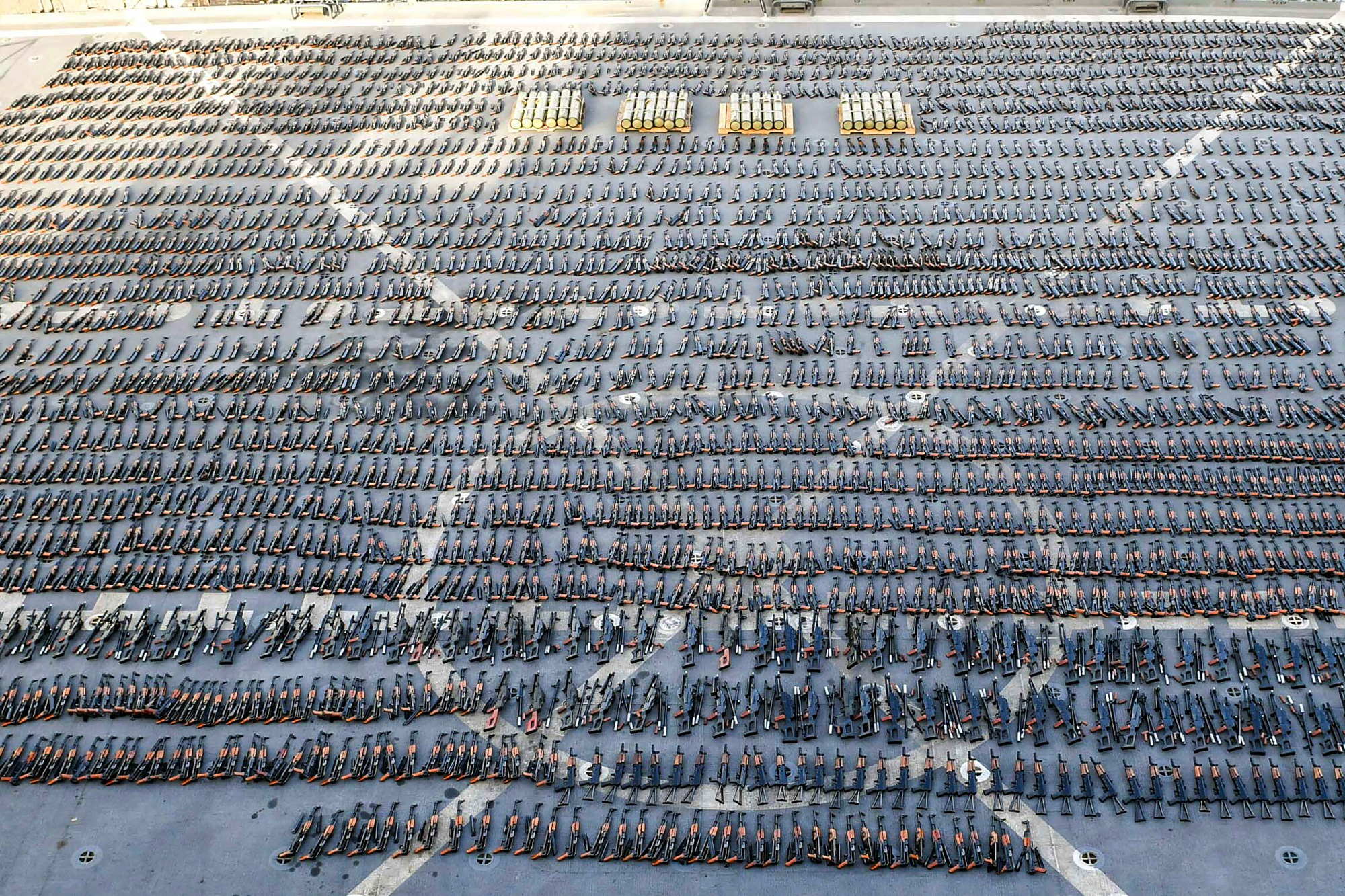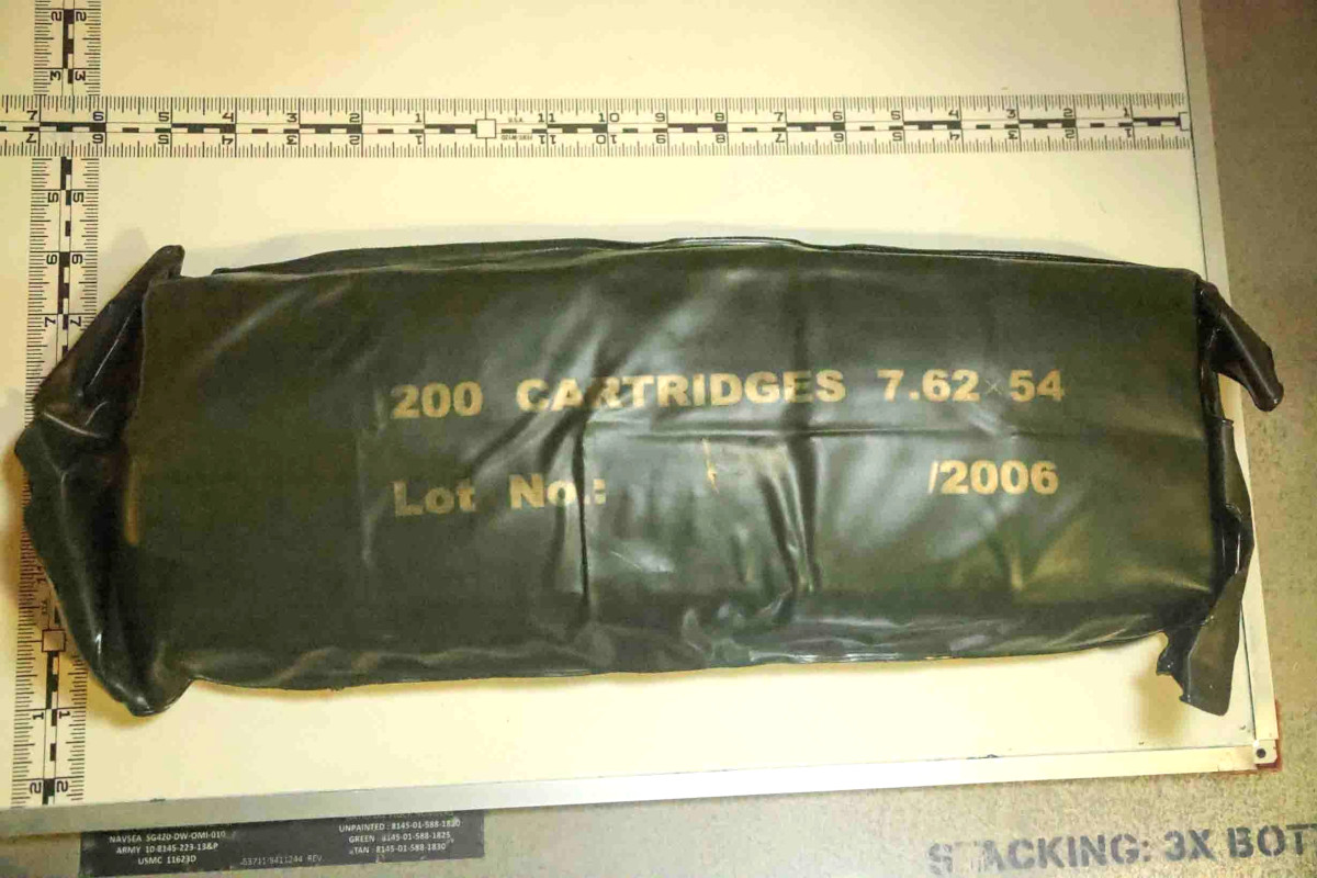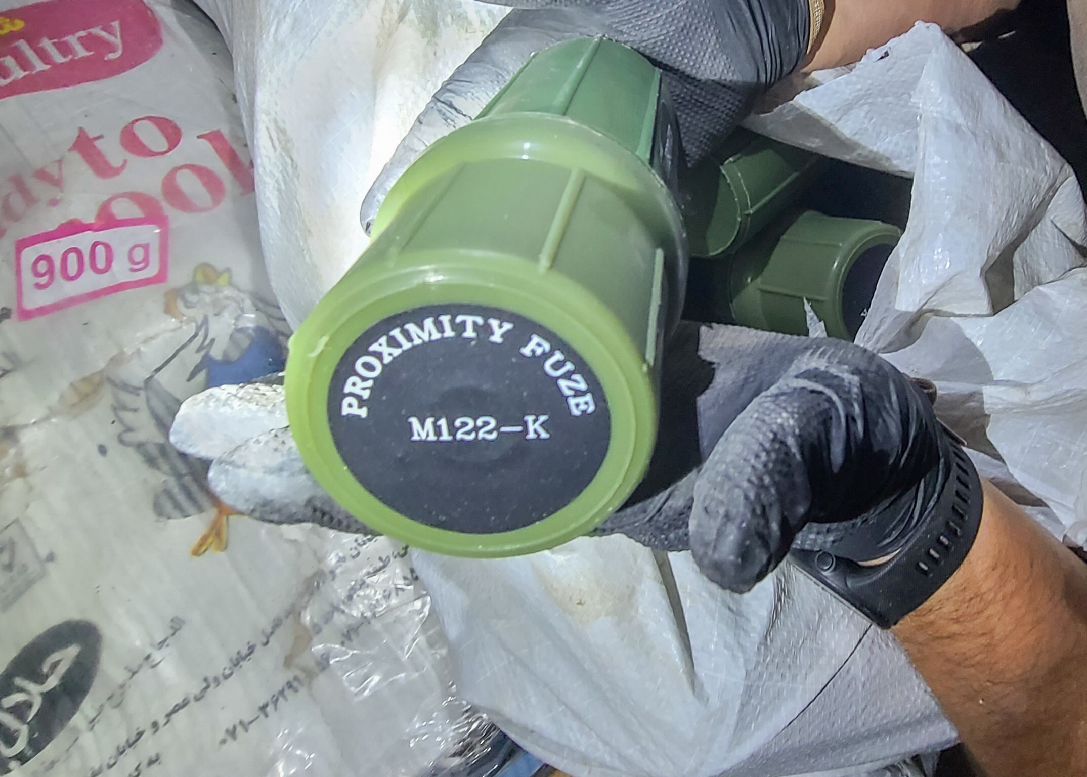Pictures that the command subsequently released showed more specifically 7.62x54mmR and 12.7x99mm small arms ammunition of indeterminate origin and Iranian-made M122-K proximity fuzes for use with 122mm artillery rockets.