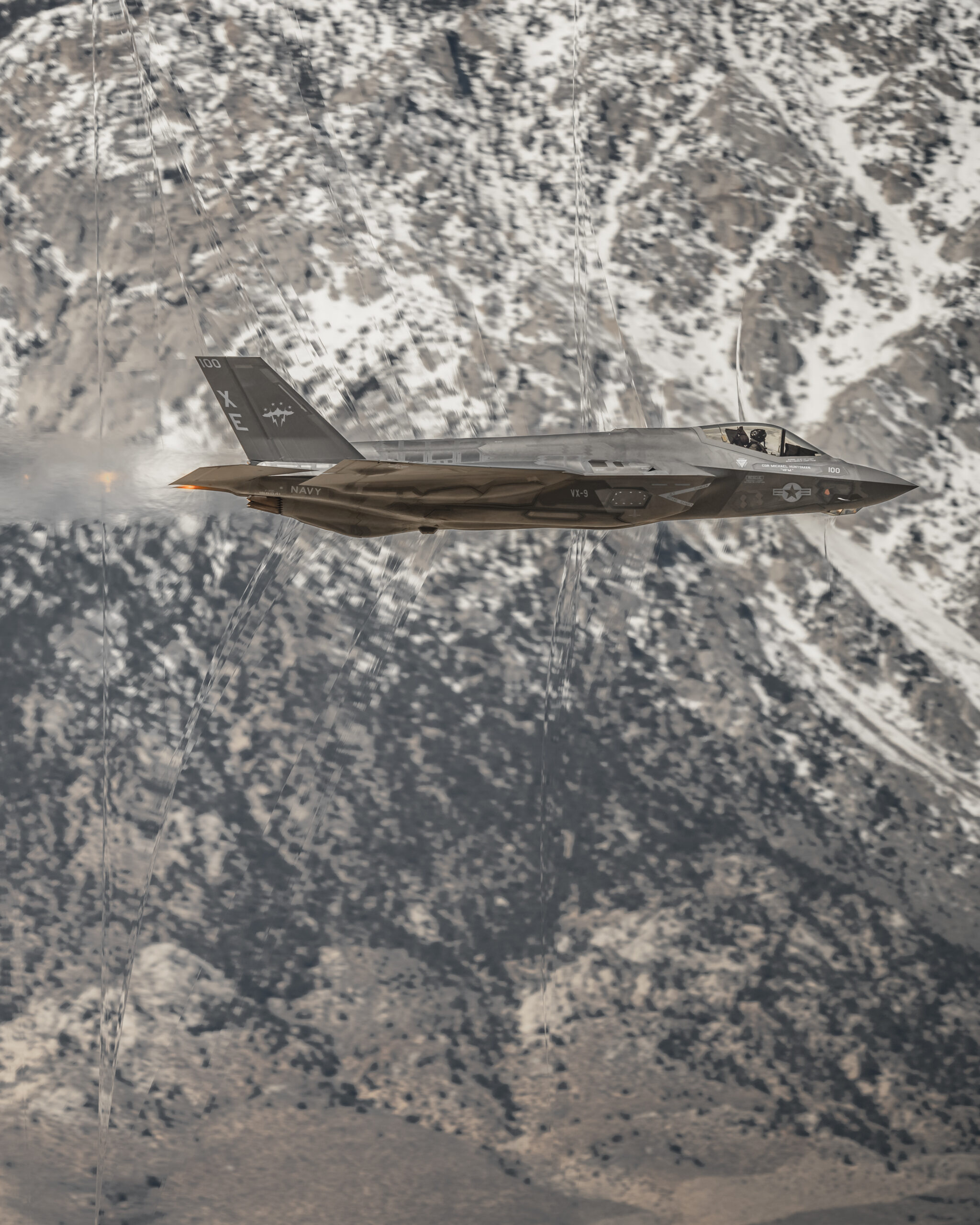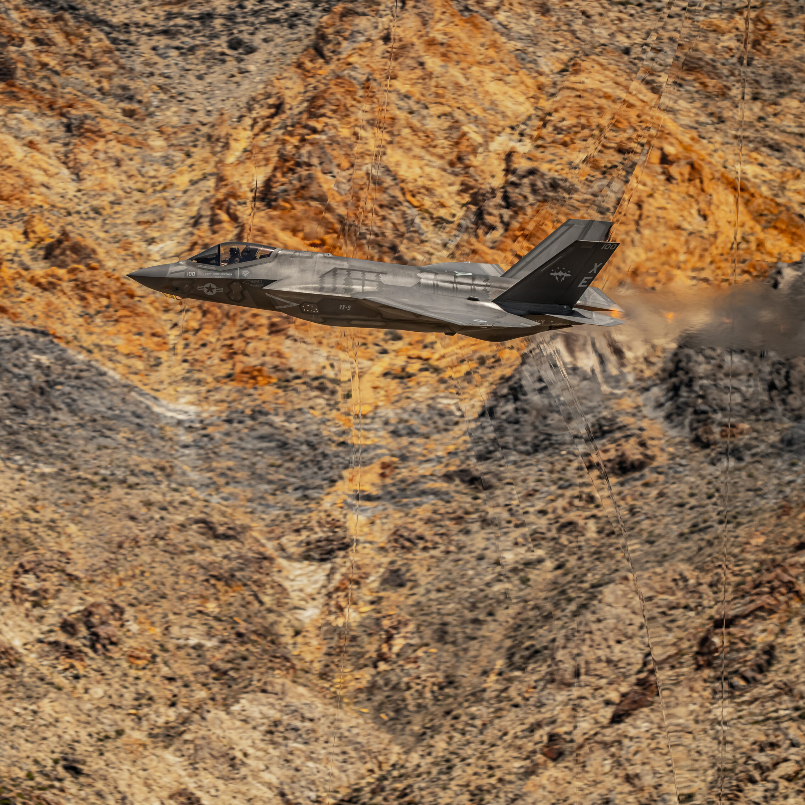 There are shockwave passes… and then there are shockwave passes. And these photos of a U.S. Navy F-35C stealth jet roaring through the Sidewinder low-level training route in southern California are some of the most impressive of their kind we’ve ever seen.
