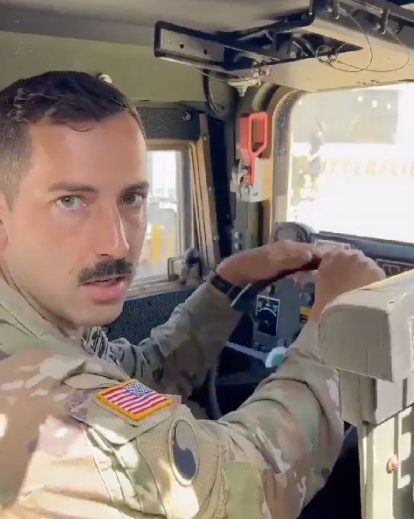 Butterworth jokingly reproduces the ASMR, short for autonomous sensory meridian response, content from the original video using the Humvee.