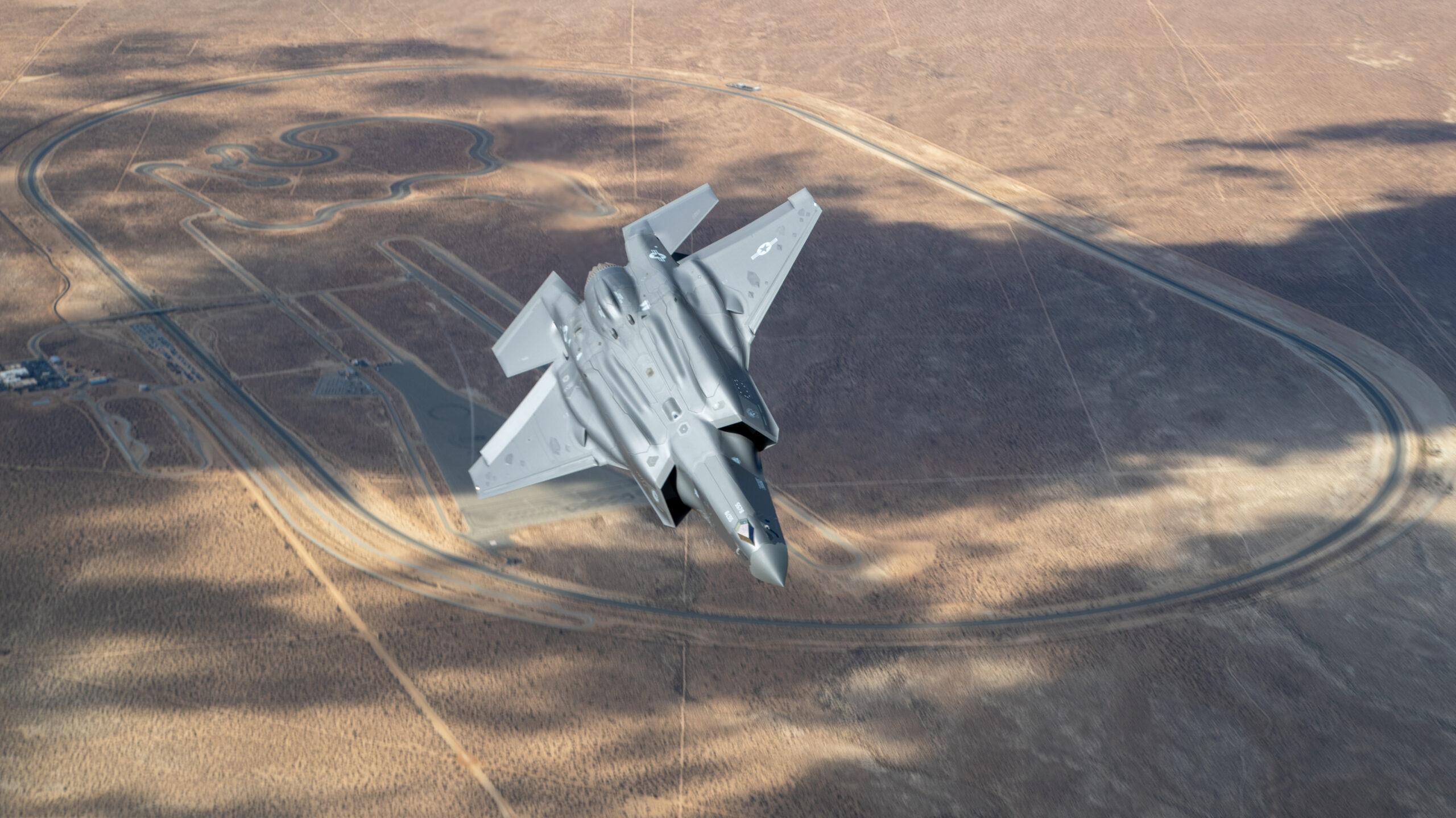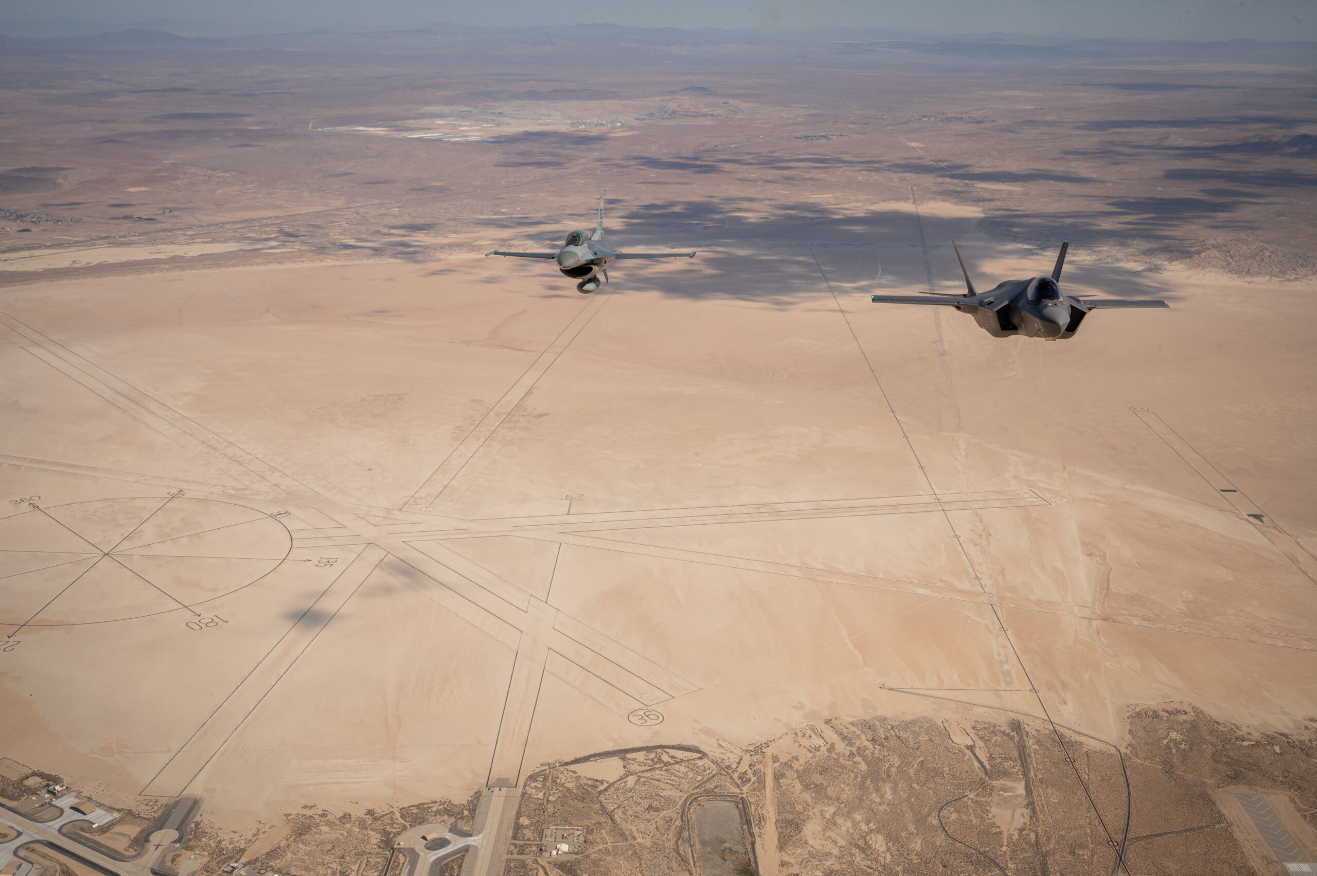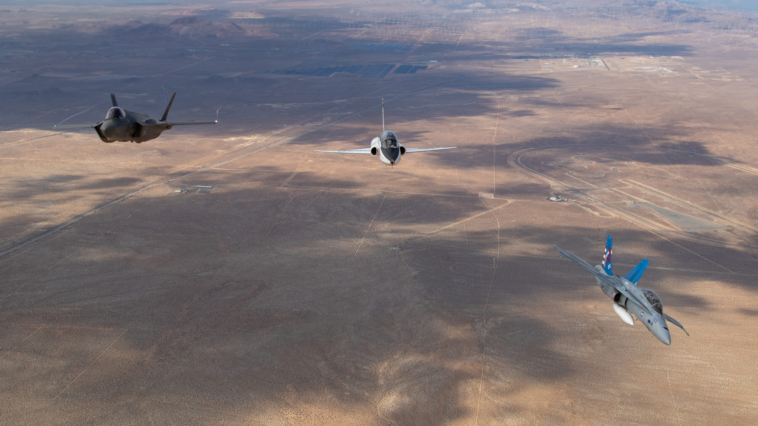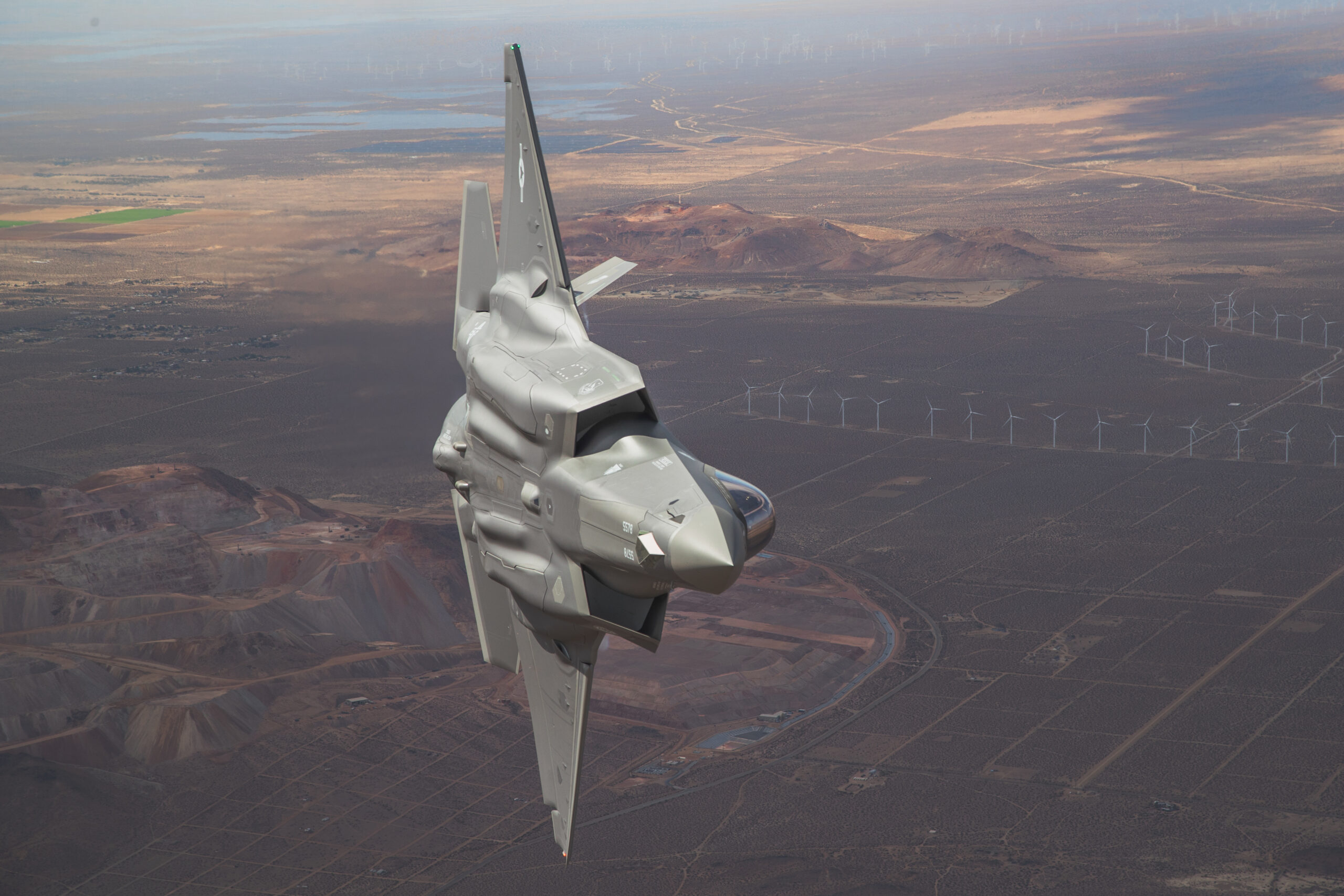 The jets were captured flying above the striking California desert landscape with the C-17 acting as the camera ship. The shots over Edwards AFB are fascinating and offer a great view of the ever-growing installation, which is home to much of what comes next in combat aviation as well as the schoolhouse that trains future test pilots and engineers that will make that future a reality.