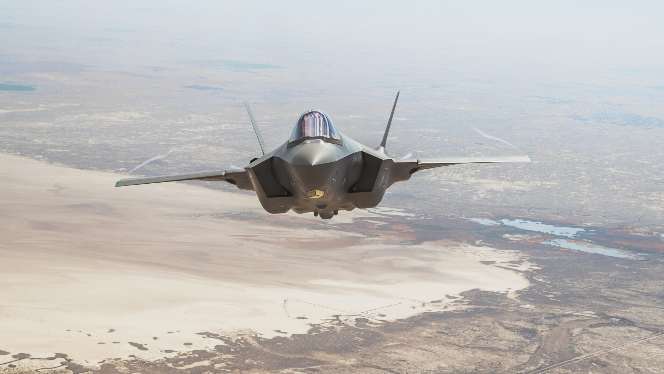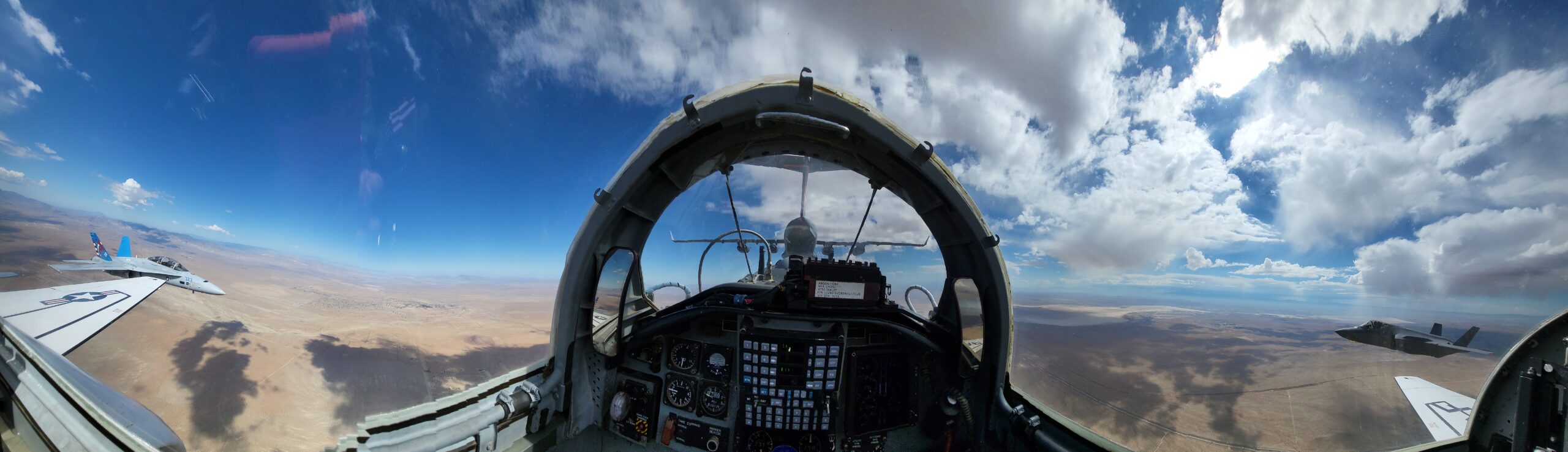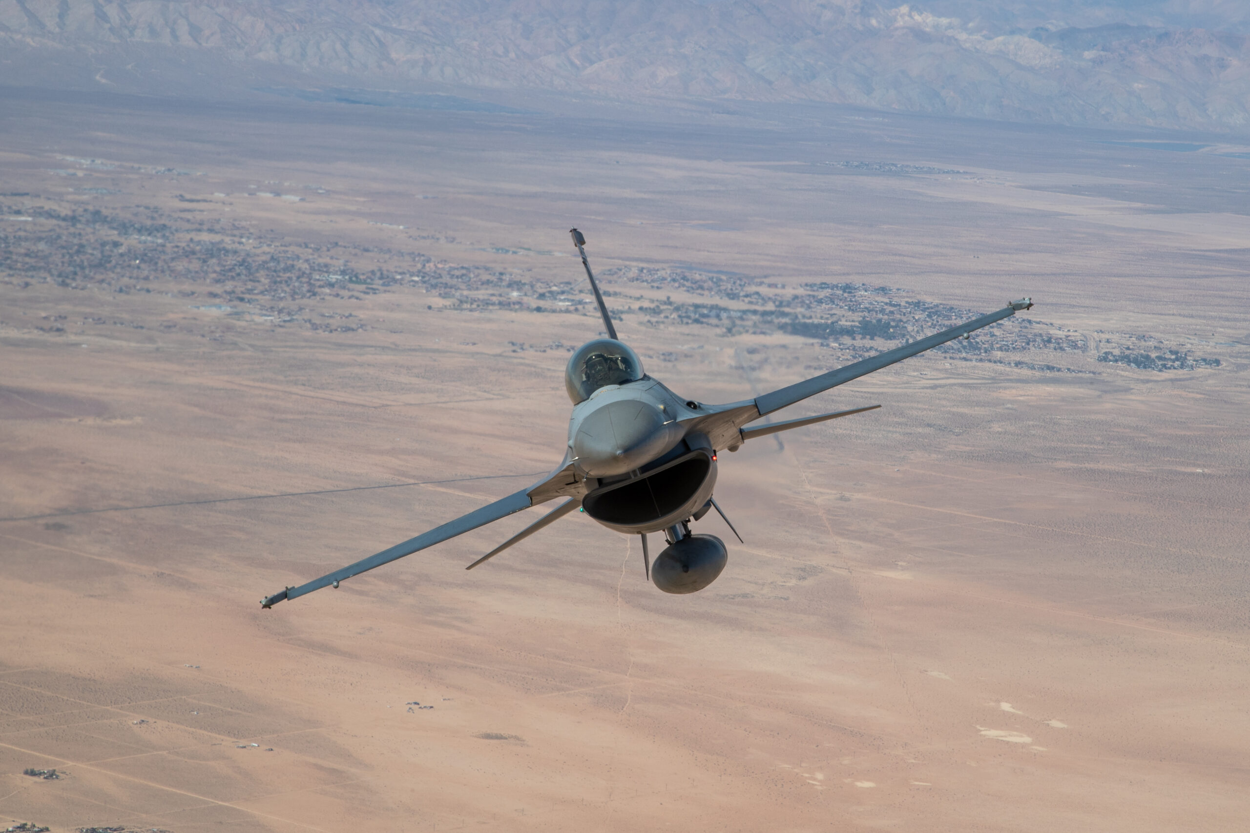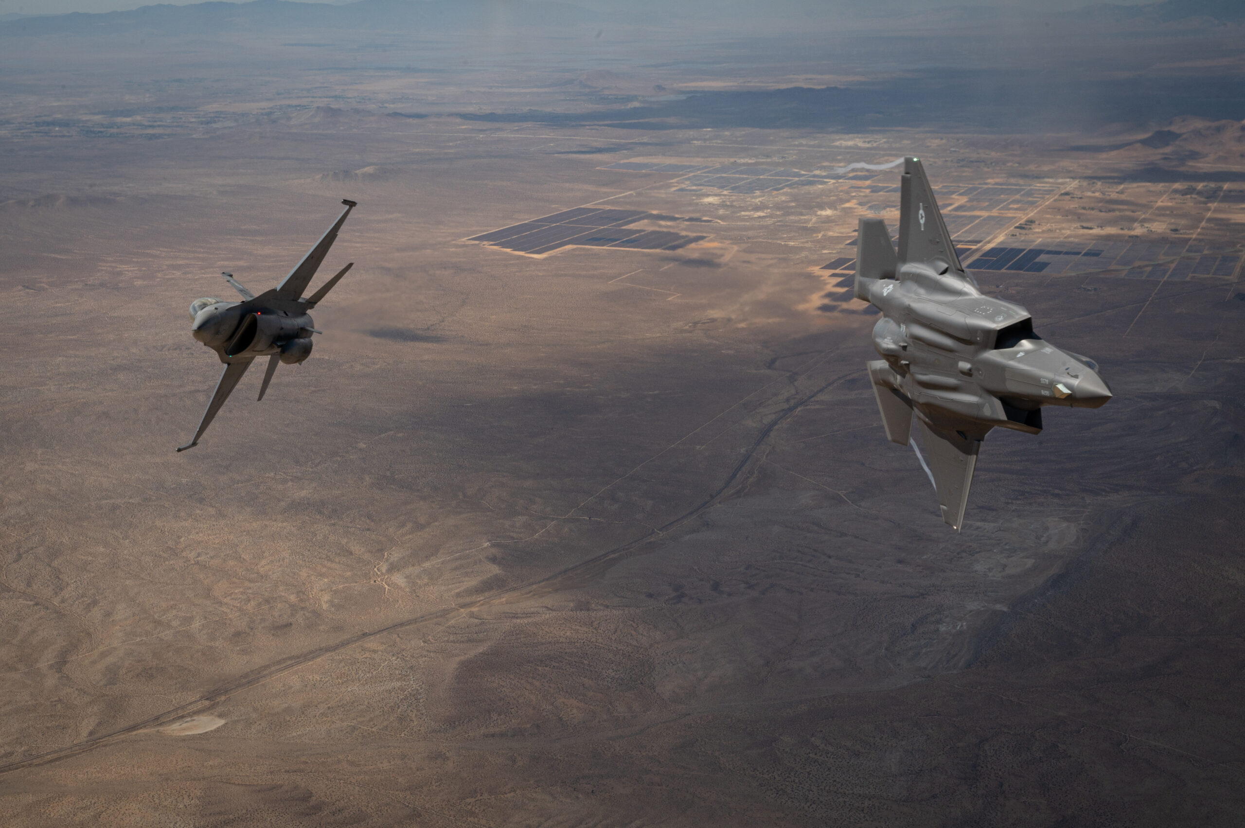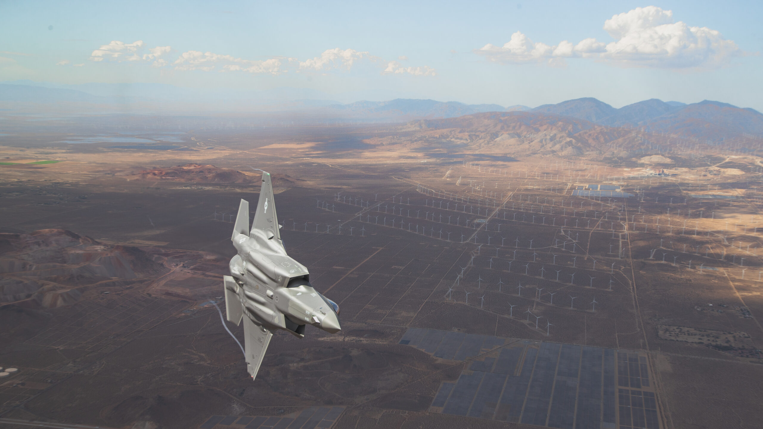 The jets were captured flying above the striking California desert landscape with the C-17 acting as the camera ship. The shots over Edwards AFB are fascinating and offer a great view of the ever-growing installation, which is home to much of what comes next in combat aviation as well as the schoolhouse that trains future test pilots and engineers that will make that future a reality.