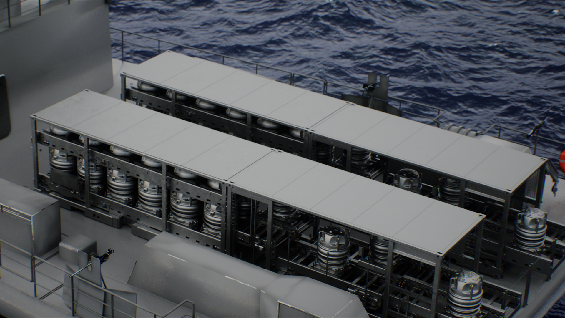 “SH Defence’s Cube™ System offers a highly flexible, secure, and efficient solution for modern naval operations. The modules can be configured for a range of uses including anti-submarine warfare, mine countermeasures, missile defense, anti-surface warfare, mine laying, and launch and recovery of UAVs and mini-subs.