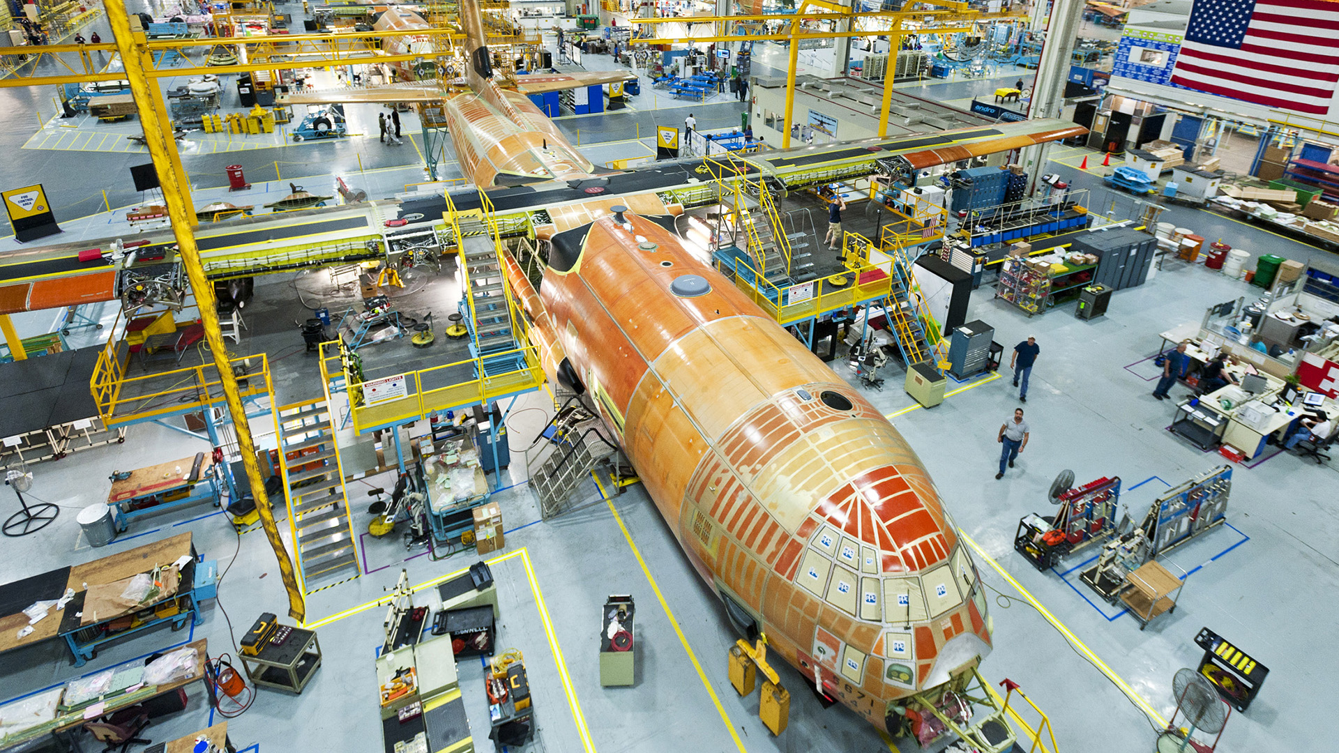 “This isn’t like building a fighter aircraft, which is hole-to-hole assembly, with the Hercules the engineers have to clamp, tack, and drill the major subassemblies to bring them together.”