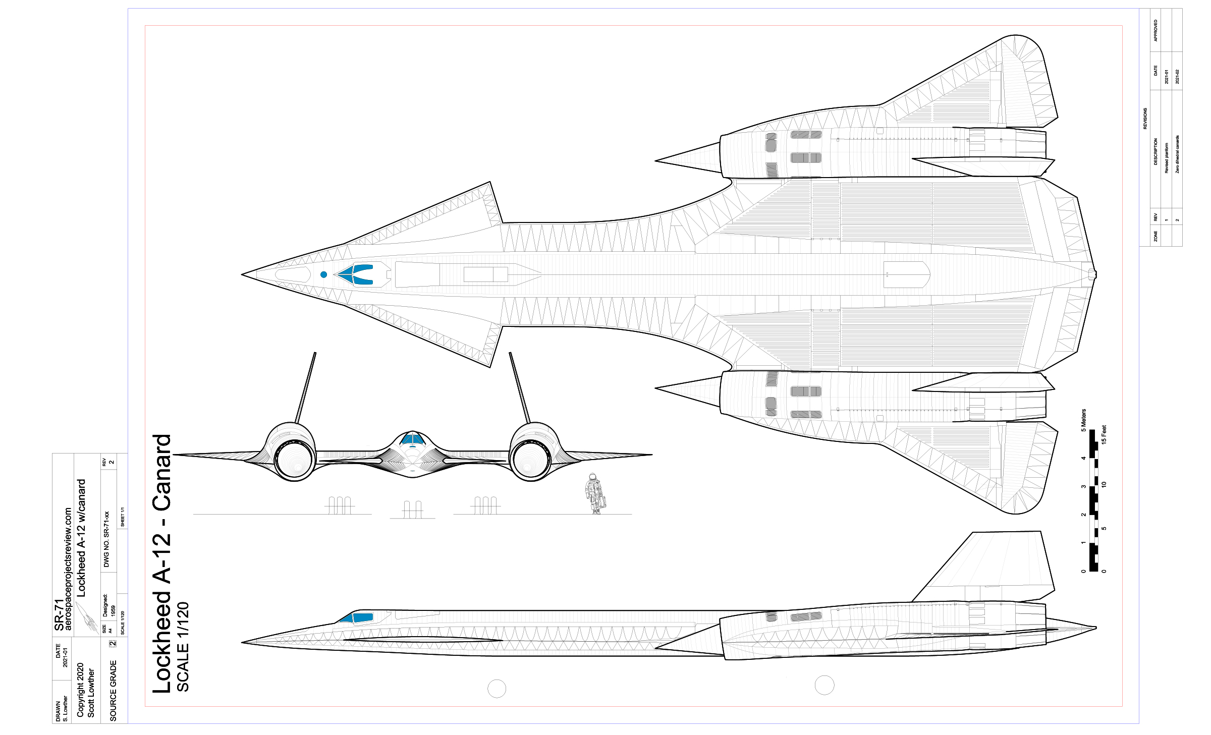 Making the A-12 a reality was also one of the hardest technological leaps ever made, one that came with a lot of trial and error. This included exploring the use of fixed foreplanes on one of a number of “Archangel” designs in order to solve lingering aerodynamic and performance challenges. While the canard configuration never flew, we were inspired by Scott Lowther’s book Origins And Evolution: Lockheed’s Blackbird and teamed up with our good friend Adam Burch of Hangar-B Productions, as we have done many times before, to bring the could-have-been A-12 precursor to life.