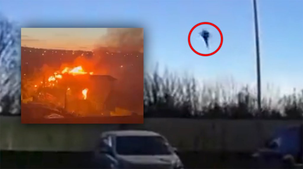 Initial video from the scene showed the Flanker nosedive into the ground.