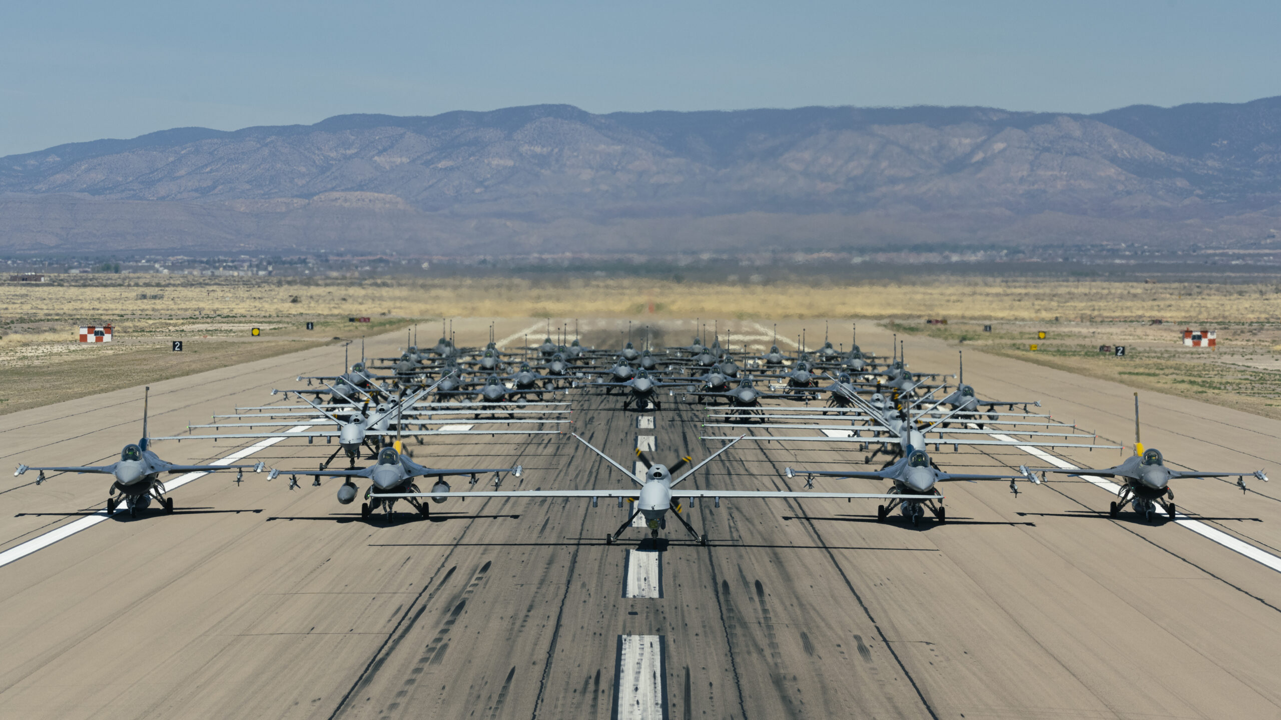 The F-16s involved in the elephant walk came from the 8th, 311th, and 314th Fighter Squadrons, while the MQ-9s are assigned to the 6th, 9th, and 29th Attack Squadrons. All these are training units, responsible for generating hundreds of combat-ready fighter pilots, remotely piloted aircraft pilots, and sensor operators every year. In fact, roughly a quarter of all fighter pilots in the Air Force at this time will have come through the Holloman training pipeline.