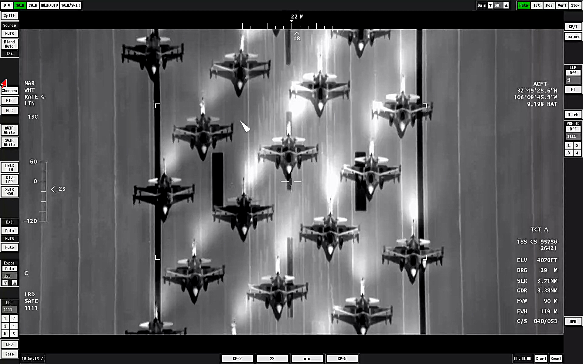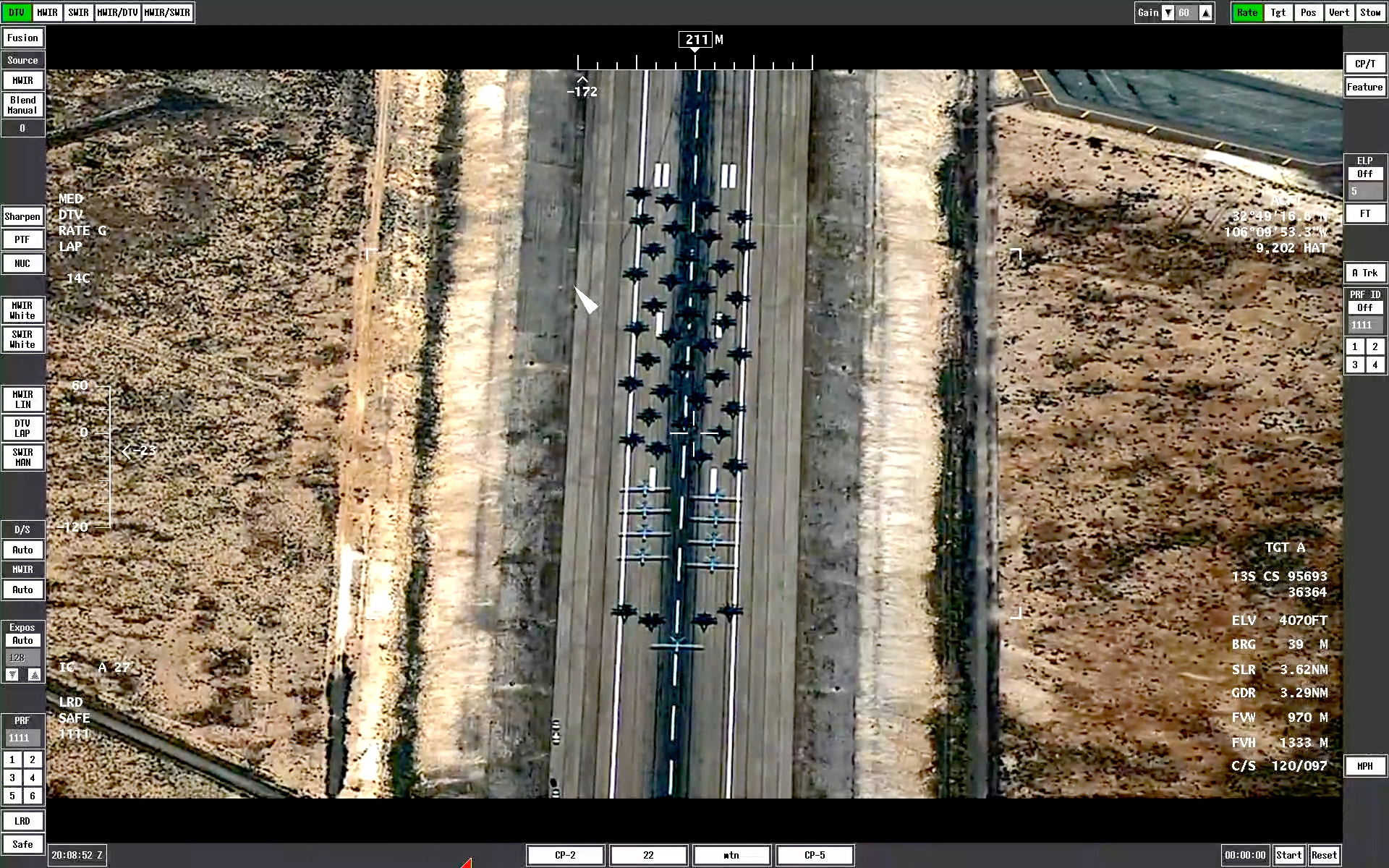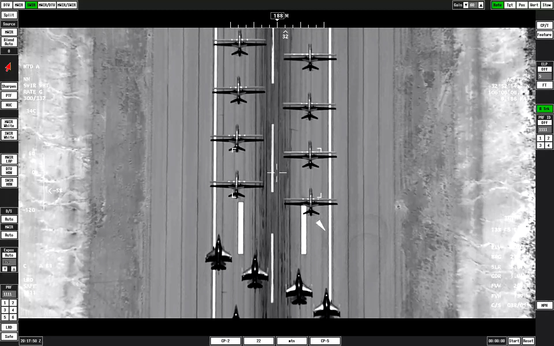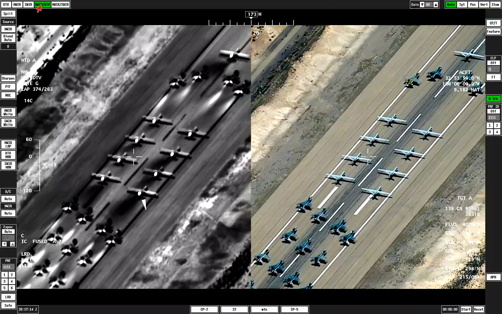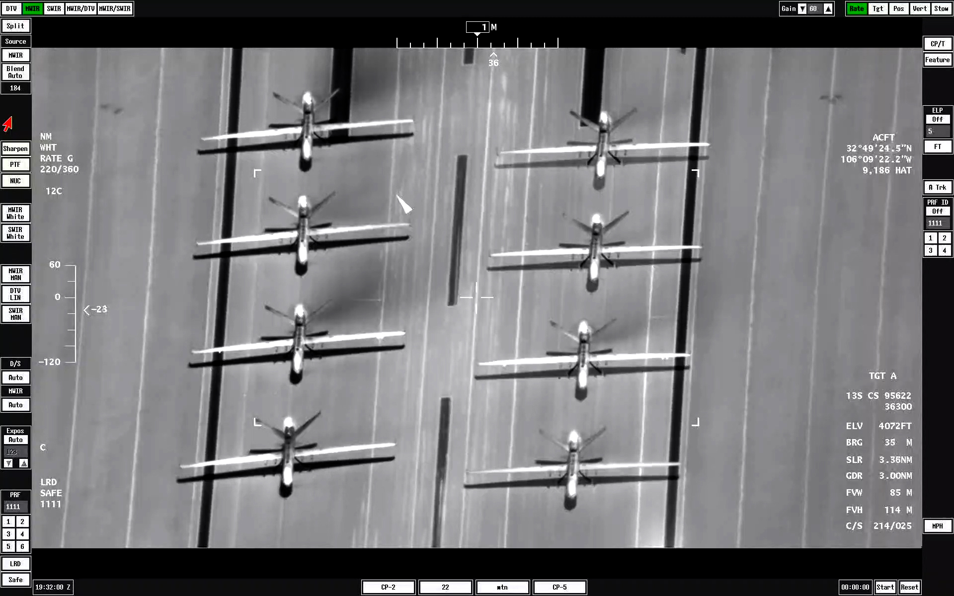 The TV and infrared footage provided by the sensors aboard an MQ-9 give a very different look at the now-familiar elephant walk. As the jets and drones gather on the runway, the thermal signatures from their engines show up as distinct white plumes on the infrared camera.