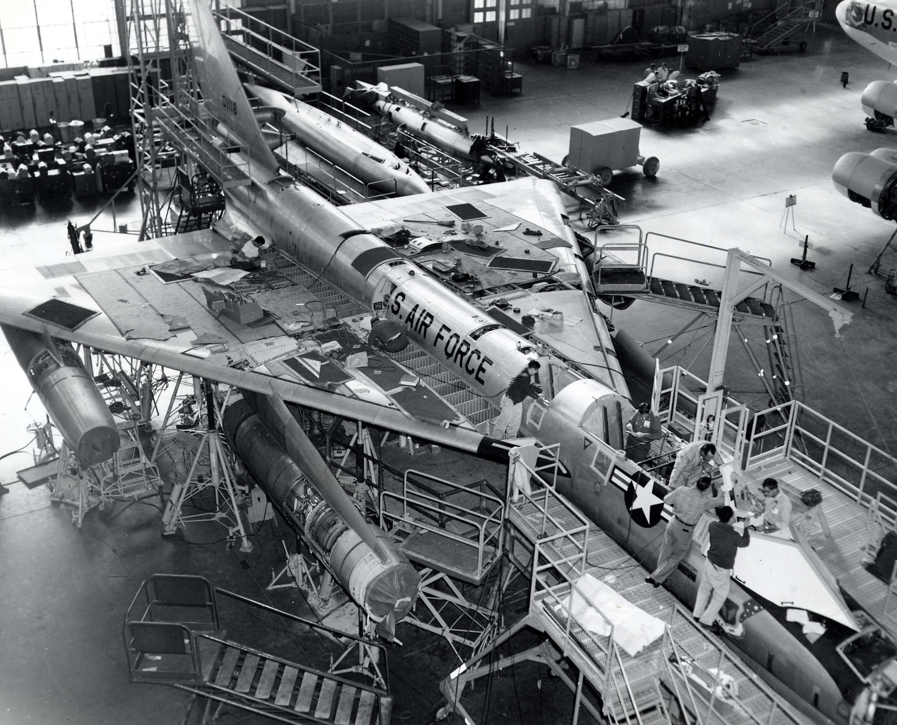 Somewhat confusingly, a full 17 of planned service test YB-58As were completed under the RB-58A designation, with plans to carry a reconnaissance pod, but most were instead used in various test programs alongside the XB-58 and YB-58A aircraft. Thereafter, they were brought up to B-58A production standards and issued to operational units.