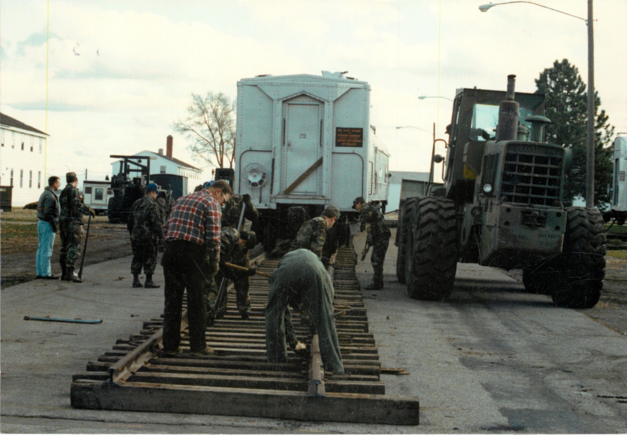 Beginning on November 1, 1990, a 20-person team led by Maj. Jerry Kolstee, the wing project officer, and Sgt. George Hledik, tapped Fairchild’s past as an Army Air Corps supply and repair depot to make the move possible. The team used 2,000 feet of spare tracks stored on-site and worked in four-hour blocks to relocate the flight simulation train.