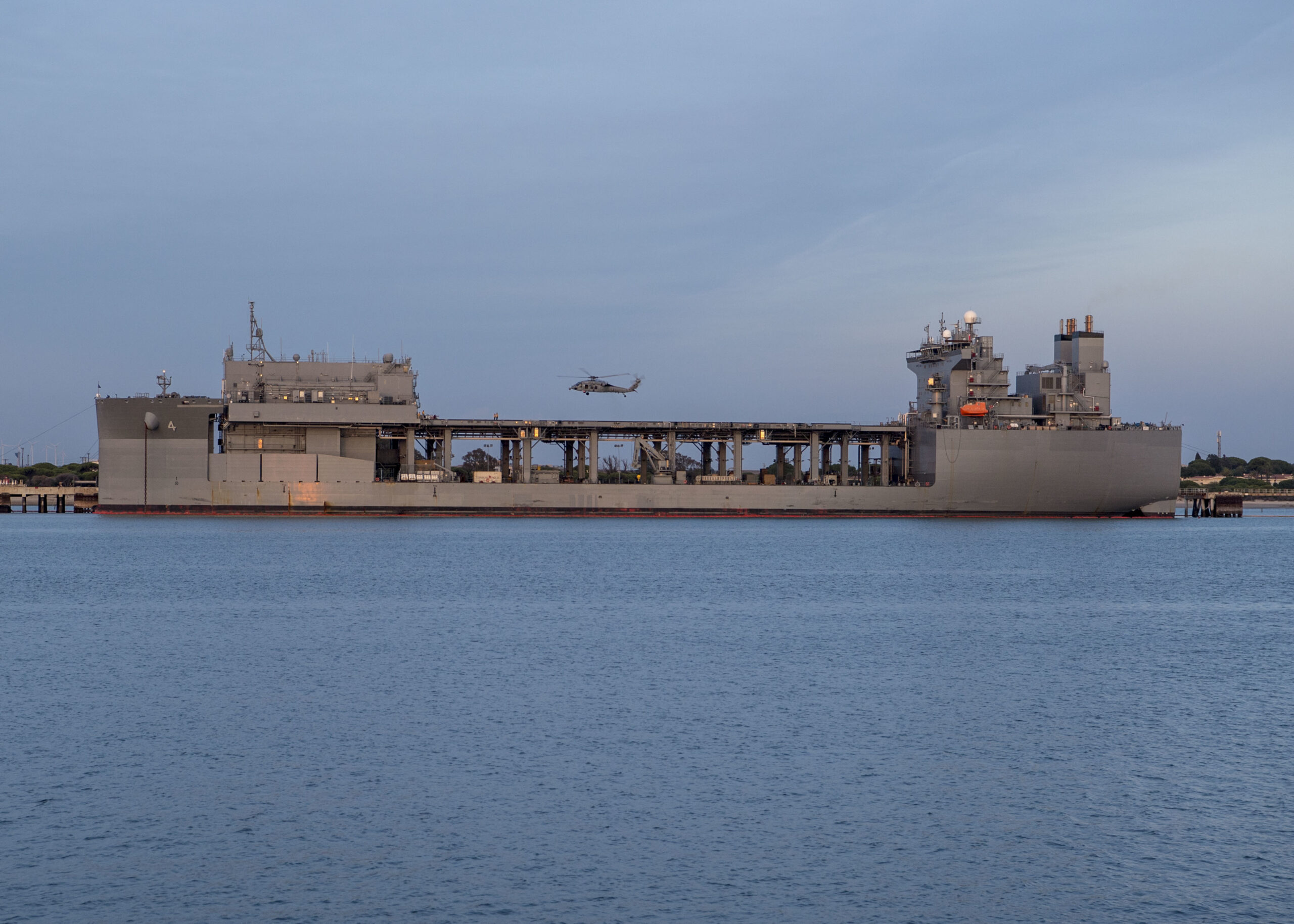 The ESBs, designed for aviation facilities, berthing, equipment staging support, and command and control, have a four-spot flight deck, mission deck and hangar. You can read more about these ships here.
