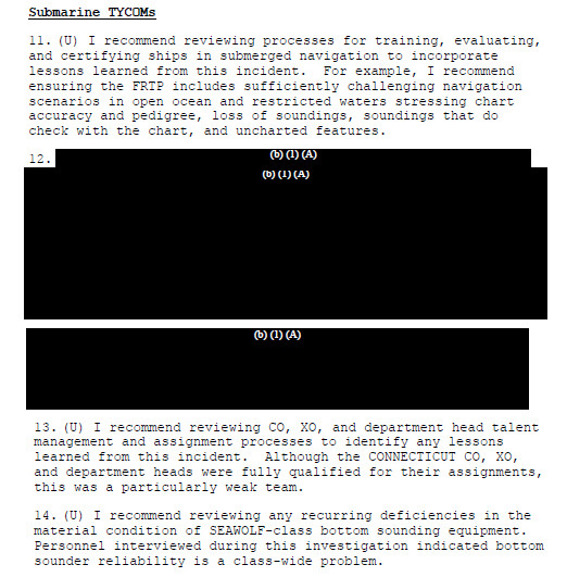 It is important to note that what we’ve learned here about Connecticut’s grounding last year is still limited and that it is difficult to truly assess the Navy’s stated conclusions based on this heavily redacted report. The unredacted portions of the report do certainly align to a great degree with the official assessments about where culpability should be placed for this incident.