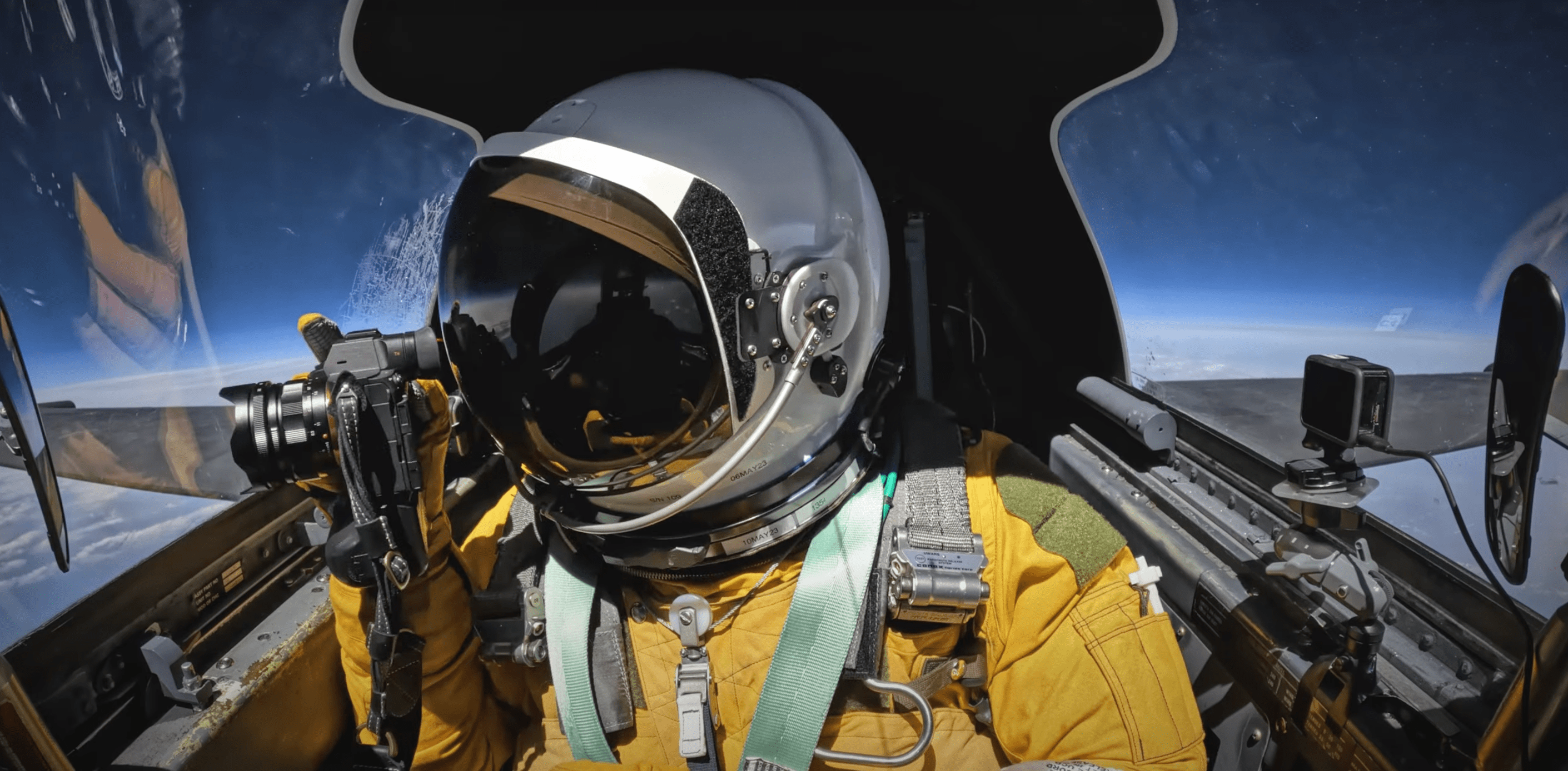 “The hardest part of the entire project was the mental aspect of it all. Not only does one have to get comfortable being in a very loud, claustrophobic space suit, but you also have to be able to control your emotions and compartmentalize things, as crying at altitude is not possible. Irritating your eyes can be a big issue if you can’t touch them due to the spacesuit helmet. Beyond that, we had to take measures to keep my heart rate and respiration (breathing) reduced as any excess excitement or fatigue would result in icing over the cockpit and I would not be able to take pictures.”