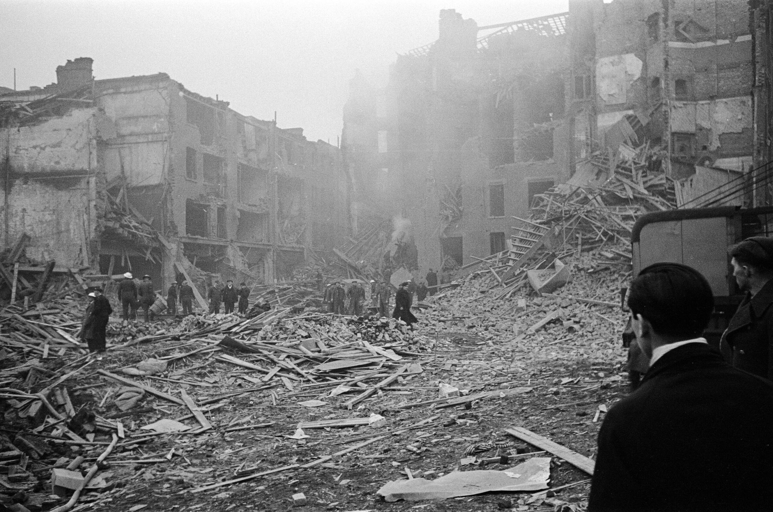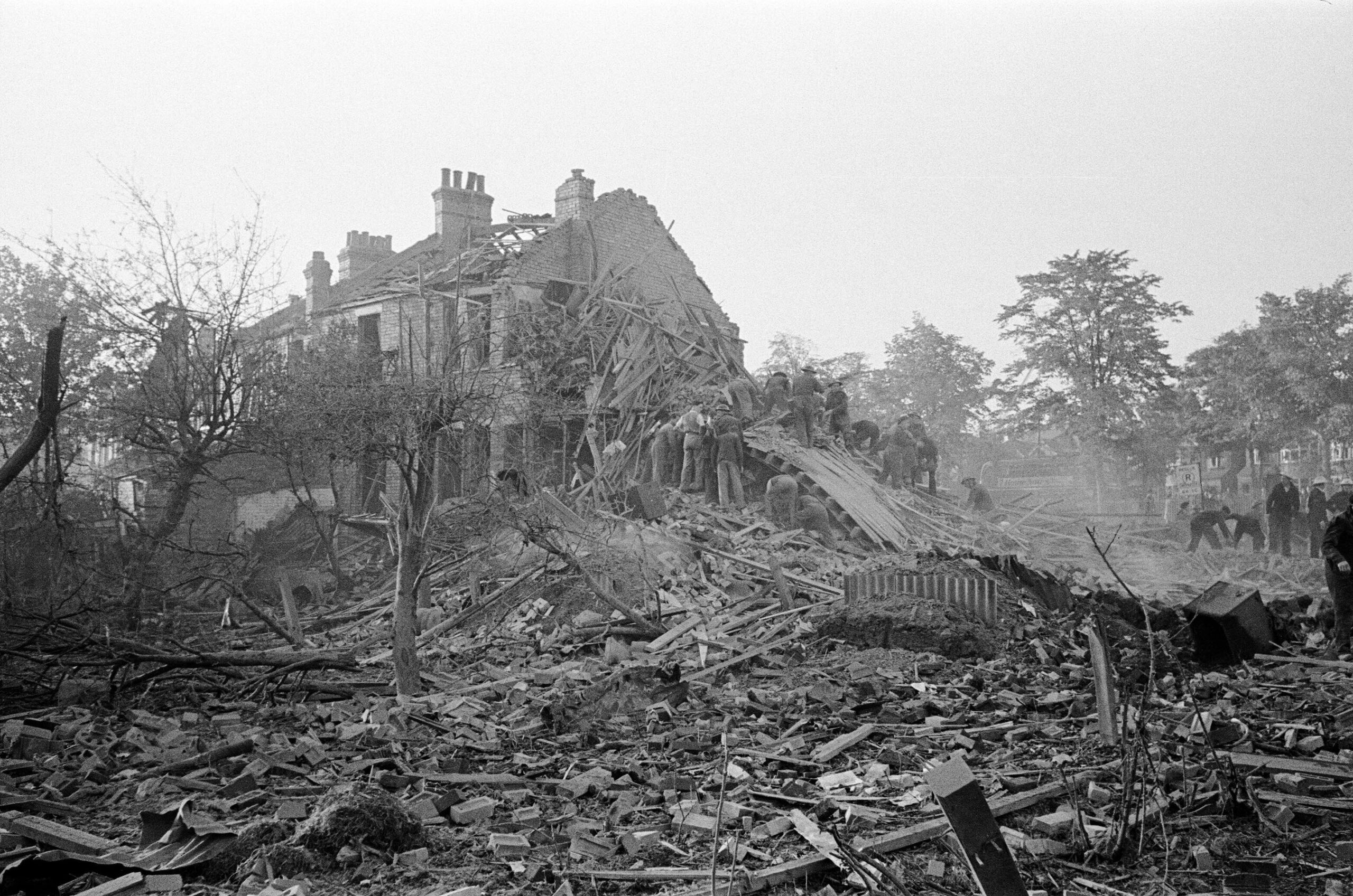 London was hit by 1,115 V-2 rockets over a seven-month period, each of which delivered a one-ton explosive warhead. This resulted in the destruction of 20,000 houses and the loss of 2,855 lives. For comparison, over just two days in February 1945, Allied bombers dropped 3,900 tons of explosives and incendiaries on Dresden, resulting in approximately 24,000 fatalities and the obliteration of a 1,600-acre area in the city center.