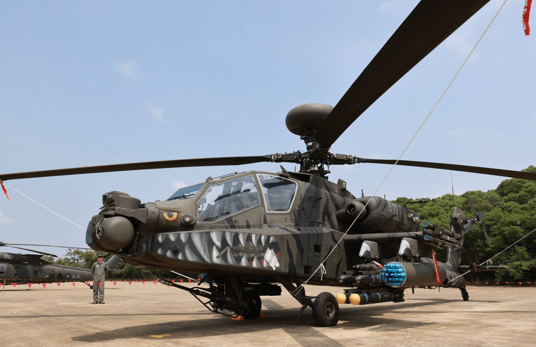 Photos first published by the Taiwanese government outlet Youth Daily News show at least two Republic of China Army (ROCA) AH-64E Apache Guardians painted in this startling tiger-striped scheme with some incredible nose art.