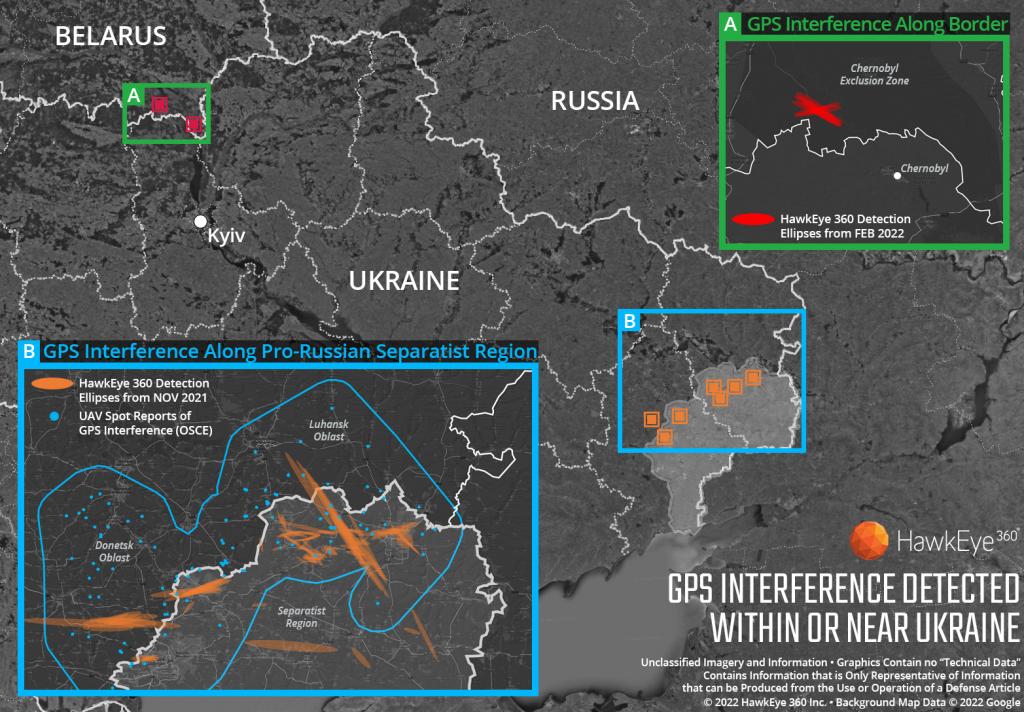Russian EW efforts were not confined to Ukrainian Army and Ukrainian Air Force radar and radio communications in the first phase of the conflict. Russian Army systems capable of attacking GNSS signals like the R-330Zh Zhitel also supported the invasion. On March 4, the RF data analytics company Hawkeye 360 revealed GNSS interference it had documented in Ukraine. The company had recorded GNSS interference from parts of eastern Ukraine controlled by pro-Russian cadres since November 2021.