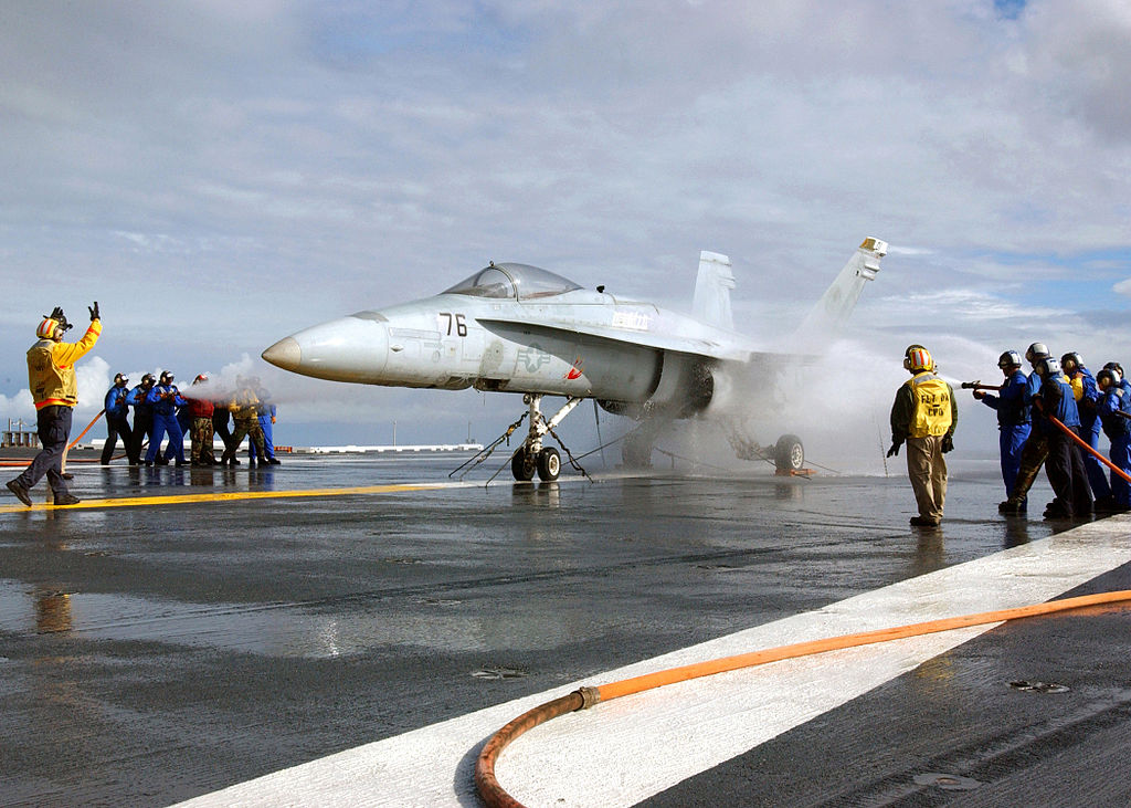 Although the appearance of the wireframe in the background of the image shared on social media may be one of the first snapshots of it to begin circulating the internet, it certainly isn’t the first time that a mock-up of a fighter jet has been used for carrier operations training purposes. The big difference is that those usually have a lot more substance and represent their aircraft in solid form. In fact, the U.S. Navy uses real retired airframes for ground handling instruction, firefighting drills, crash recovery exercises, and other training aboard its carriers. There is usually always at least one derelict airframe present on America’s flattops, which can confuse onlookers who think it’s a flyable aircraft even though the ship’s air wing isn’t embarked.
