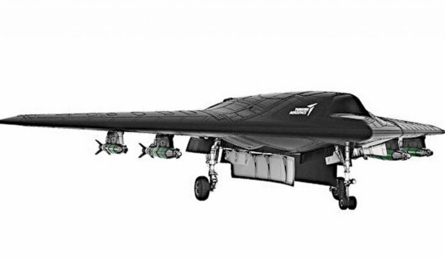 What looks to be a pair of fuel tanks or weapons shapes are seen under its wings. A large conformal rectangle fairing and a round one in front of it appear to be a different skin texture than the rest of the airframe. It’s unclear what exactly this is for but one possibility is that these are shrouds to cover antenna arrays. The planform overall is similar to Boeing’s X-45C and Dassault’s nEURon, although the overall aircraft is less refined.
