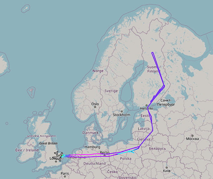 The plane then turned north, passing over Lithuania, Latvia, and Estonia, before crossing the Gulf of Finland and entering Finnish airspace. Once there, it conducted a number of orbits, particularly in the southeastern end of the country facing Russia’s Lake Ladoga and the strategic port city of St. Petersburg, before returning to base.