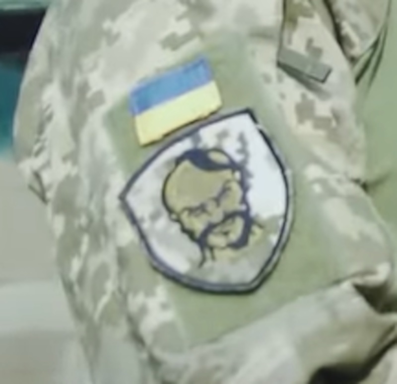 The hairstyle called an Oseledets, or Chub, features a single lock of hair streaming from a mostly shaven or bald pate. A stylized image of a Cossack with the same hairstyle has made it onto a unit patch for some TDF fighters. It is both a symbol of national identity and a show of disdain for their Russian opponents. Russians commonly use their word for the hairstyle as an ethnic slur for Ukrainians.