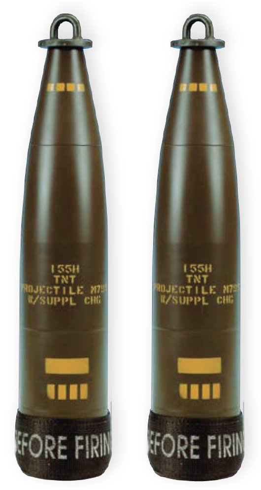 The M795 projectile is the standard round for the 155mm M777 towed howitzers used by the U.S. Army and U.S. Marine Corps.