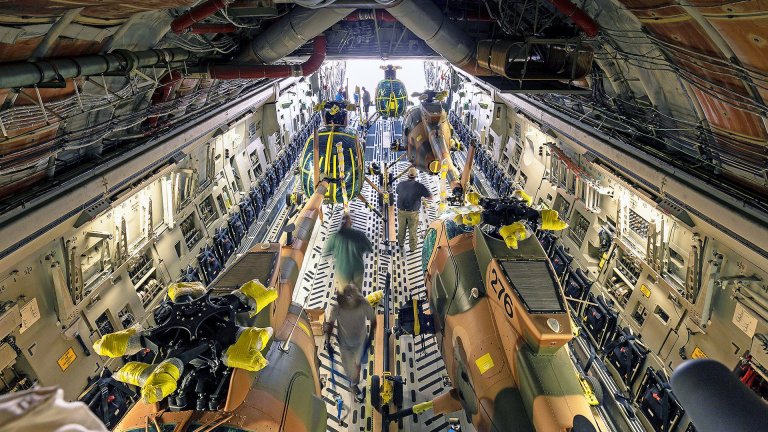 Both the UH-60 and Mi-17 are similar in size and mission profile, with twin engines and room for significant cargo or troop transport. Where the Mi-17 has a maximum takeoff weight of about 28,000 pounds, the Black Hawk can liftoff at a total of 22,000 pounds. Both aircraft can fly at a maximum speed of around 150 knots. However, the Hip has more volume than the Black Hawk, sports a rear ramp and is more capable of being sustained in austere environments by less-trained crews. It also performs better in hot weather at high altitudes under certain conditions.