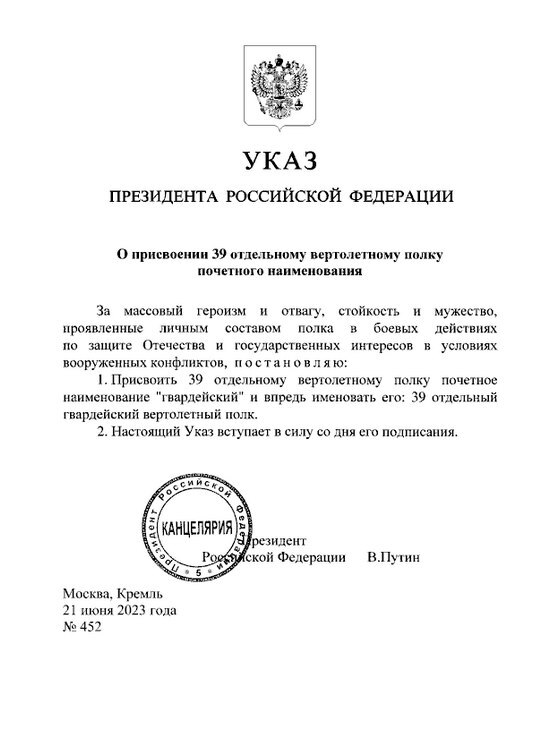 “I heartily congratulate the personnel of the regiment!” Aksenov wrote in his Telegram channel Wednesday. “Our helicopter pilots inflict crushing blows on the enemy, bringing Victory closer. You are real heroes guys!”