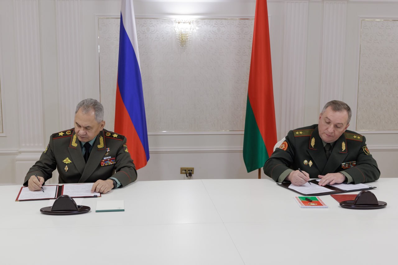 Russian Defense Minister Sergei Shoigu and his Belarusian counterpart Viktor Khrenin “put their signatures on documents outlining the process for storing Russian non-strategic nuclear weapons in a special facility at the Republic of Belarus,” Russia’s Defense Ministry (MoD) announced today on its Telegram channel.