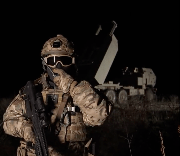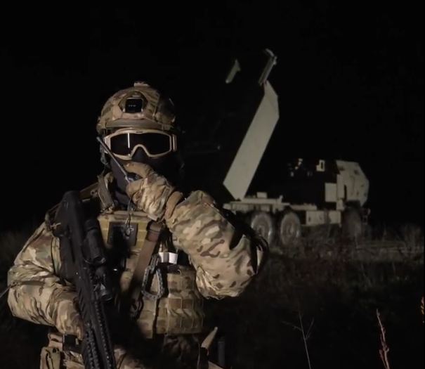 The video opens with the soldier standing in front of a HIMARS launching its vaunted Guided Multiple Launch Rocket Systems (GMLRS) munitions from an undisclosed location. These munitions, which can reach up to about 50 miles, have proven a game-changer for Ukraine as it has been able to conduct deep strikes on Russian logistics and supply hubs far beyond the front lines.