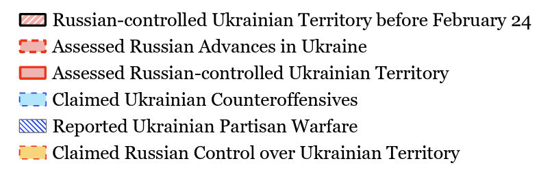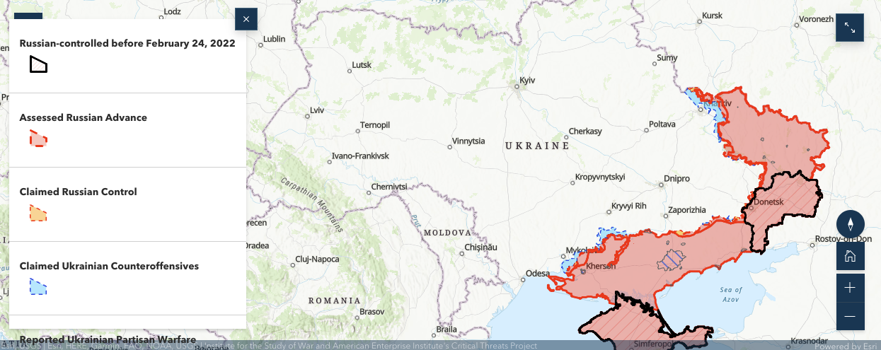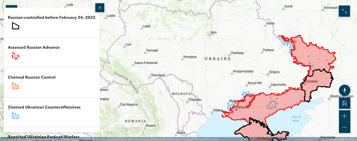 In addition, the latest information provided by the Institute for the Study of War (ISW) and AEI’s Critical Threats Project shows Ukraine claimed counter-offensives near Kherson as well as near Kharkiv in the east.