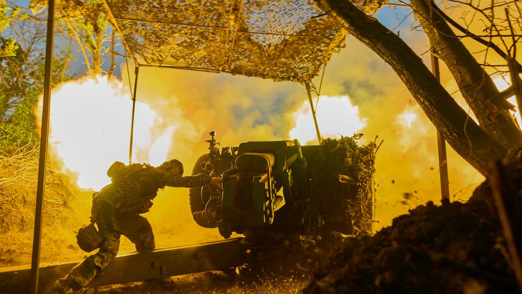Like these Ukrainian 2S7 Pion self-propelled 203mm cannon, which both sides possess and use against each other.