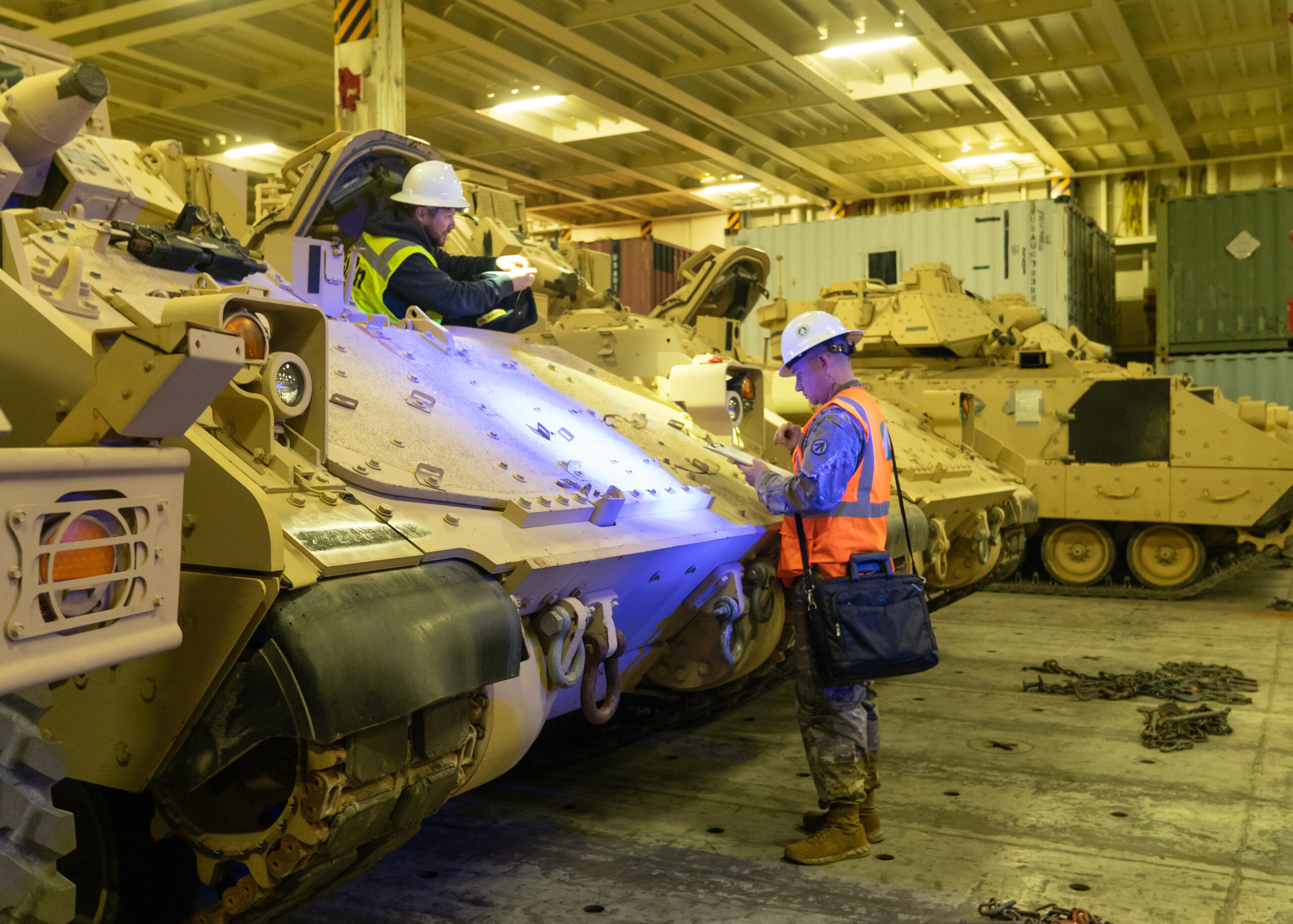 The first batch of a total of 109 Bradleys promised to Ukraine was loaded onto the ARC Integrity roll-on roll-off (RORO) cargo vessel Jan. 25 at the Transportation Core Dock in North Charleston, South Carolina, according to the Defense Department’s Defense Visual Information Distribution Service. The ARC Integrity is a roll-on roll-off cargo vessel owned by ARC Shipping and contracted by TRANSCOM.