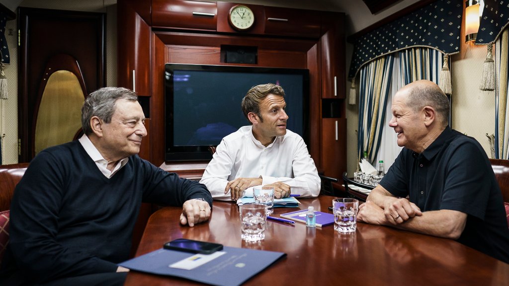 Macron, Scholz and Draghi rode from Poland in a private train car from Poland to Kyiv.