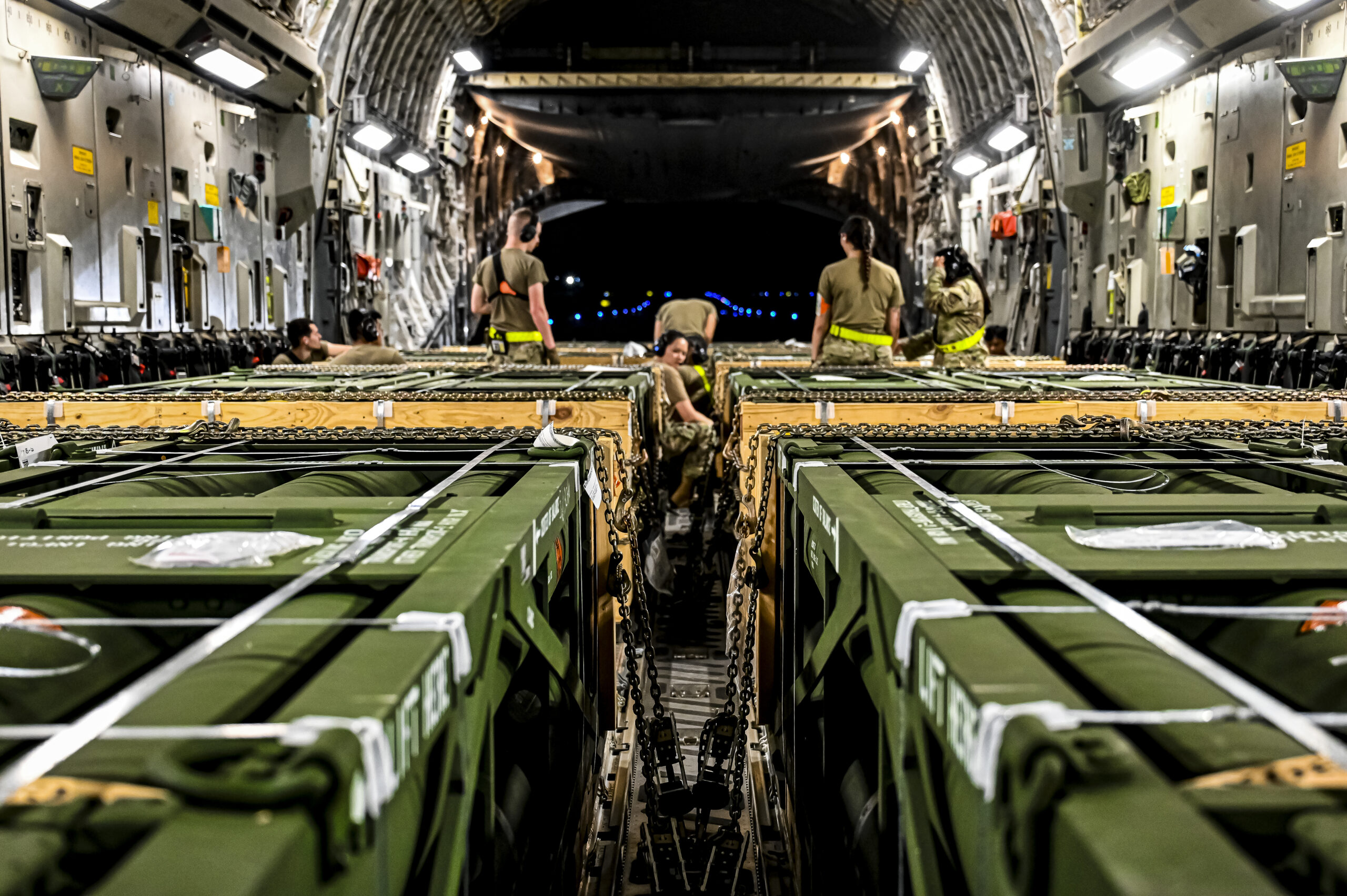 The U.S. military has posted images of security assistance being flown from Joint Base McGuire-Dix-Lakehurst, New Jersey, to Europe on their way to Ukraine. The 305th Aerial Port Squadron is shown loading the first Guided Multiple Launch Rocket System (GMLRS) pods that have been seen being shipped to Ukraine from the U.S.